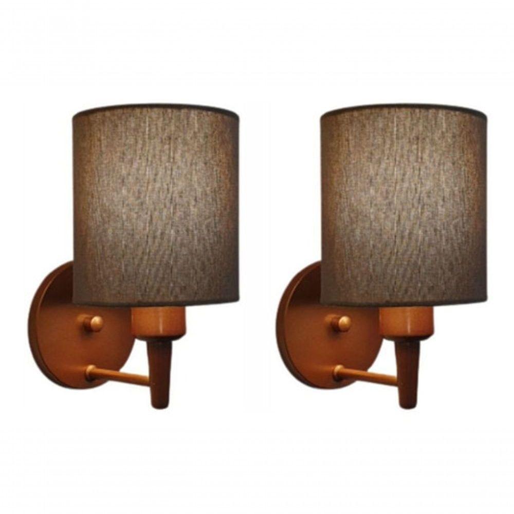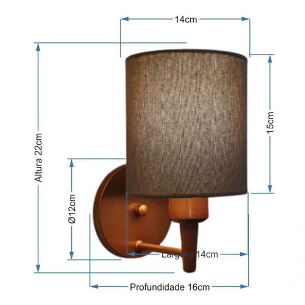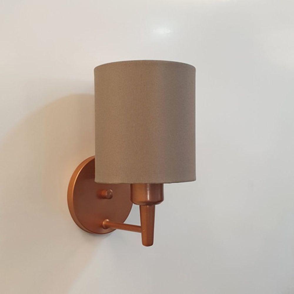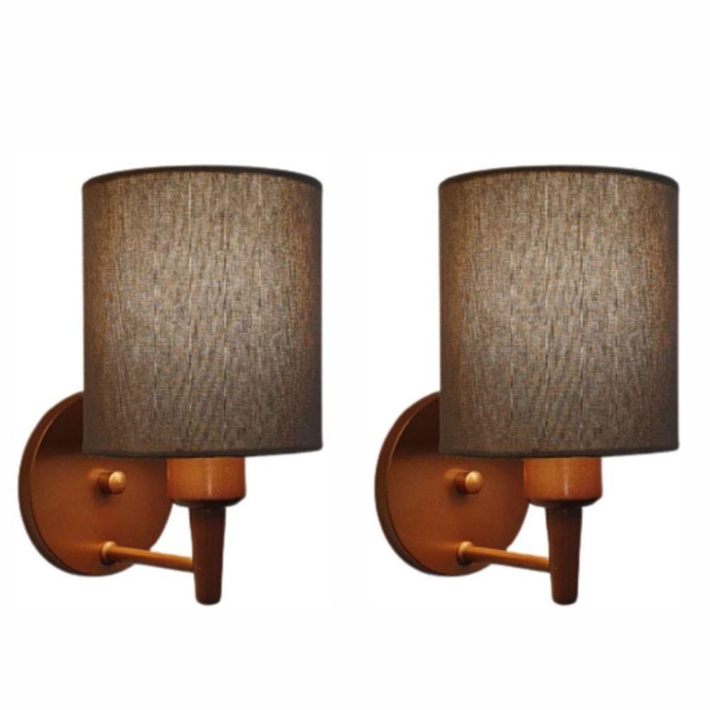 Kit-2 Arandela Cilíndrica Md-2009 Base Cobre Cúpula Em Tecido 14x15cm Caqui - Bivolt