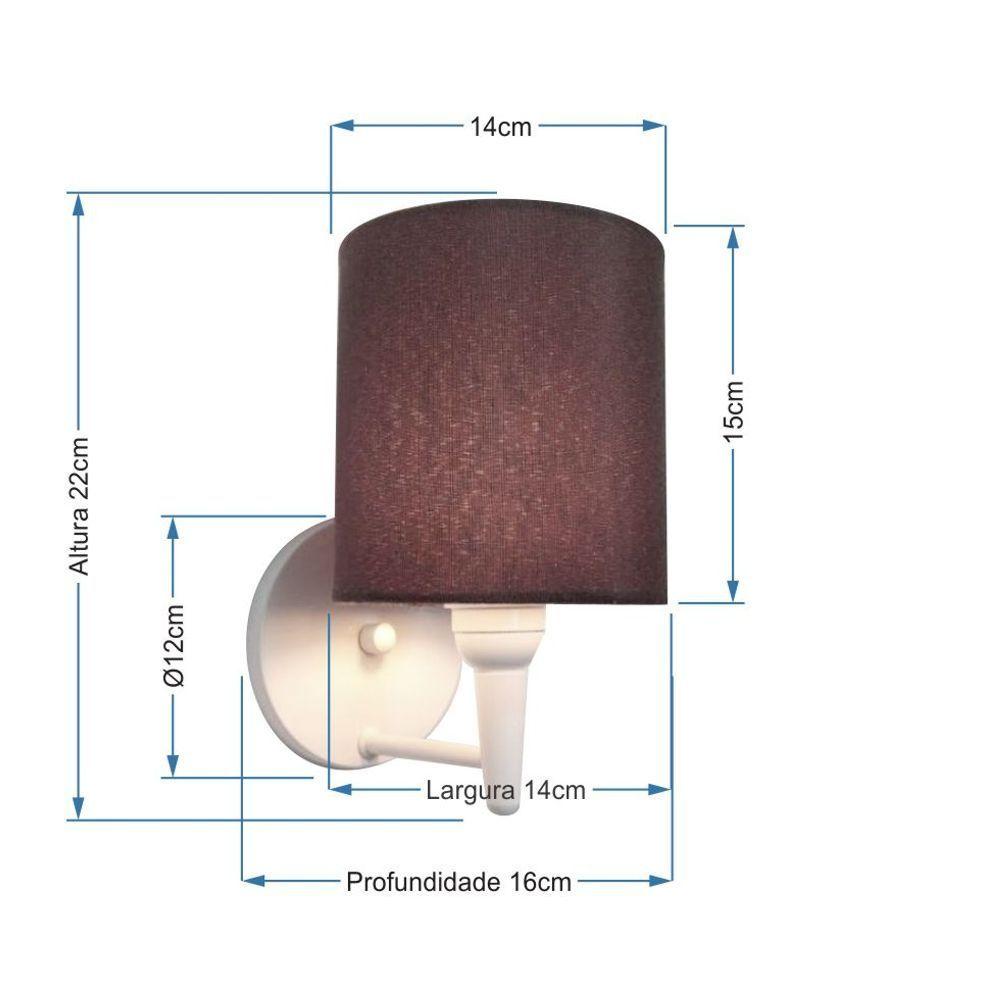 Arandela Cilindrica Md-2009 Base Branco Cúpula Em Tecido 14x15cm Café - Bivolt