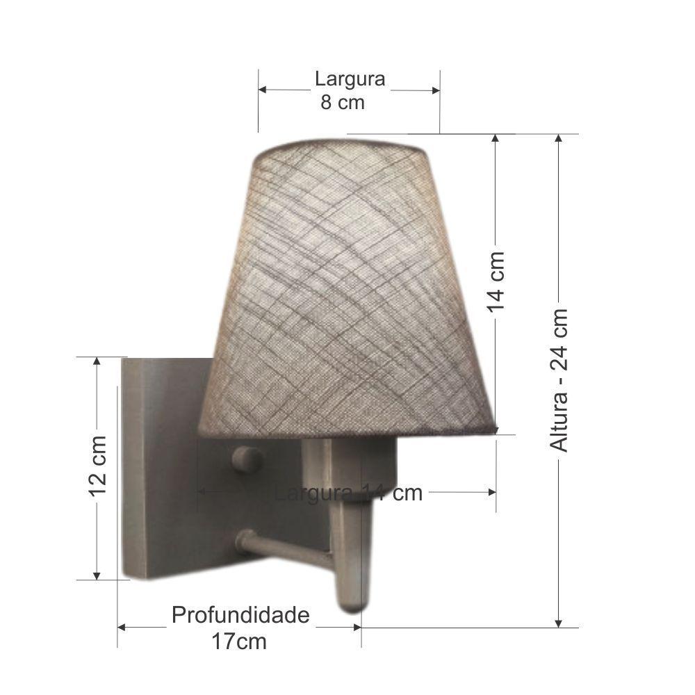 Arandela Quadrada Md-2034 Cinza Cúpula Em Tecido Cone Rustico Cinza - Bivolt