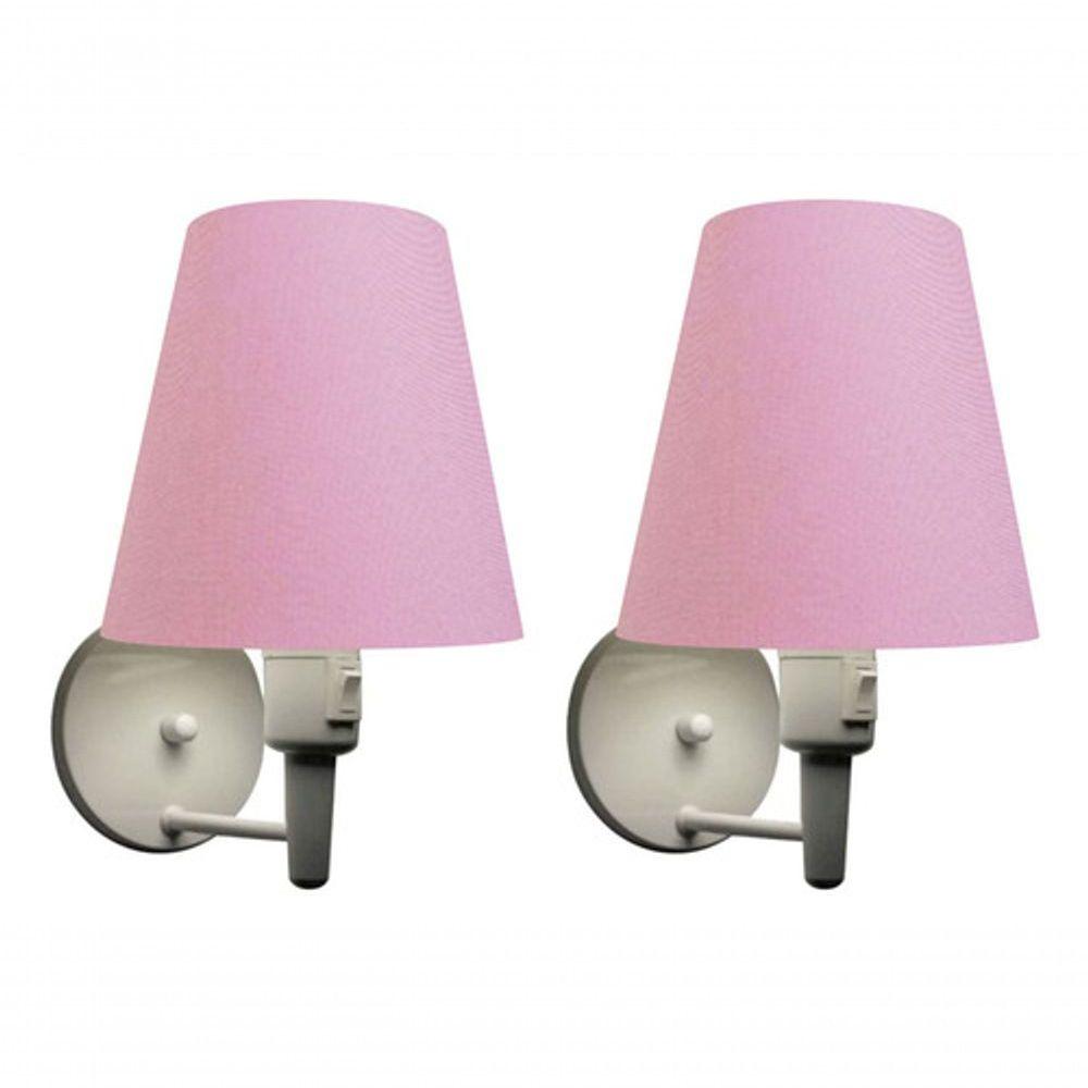 Kit-2 Arandela Cone Md-2013 Branco C- Inter Liga E Desl Cúpula Em Tecido Rosa Bebê - Bivolt