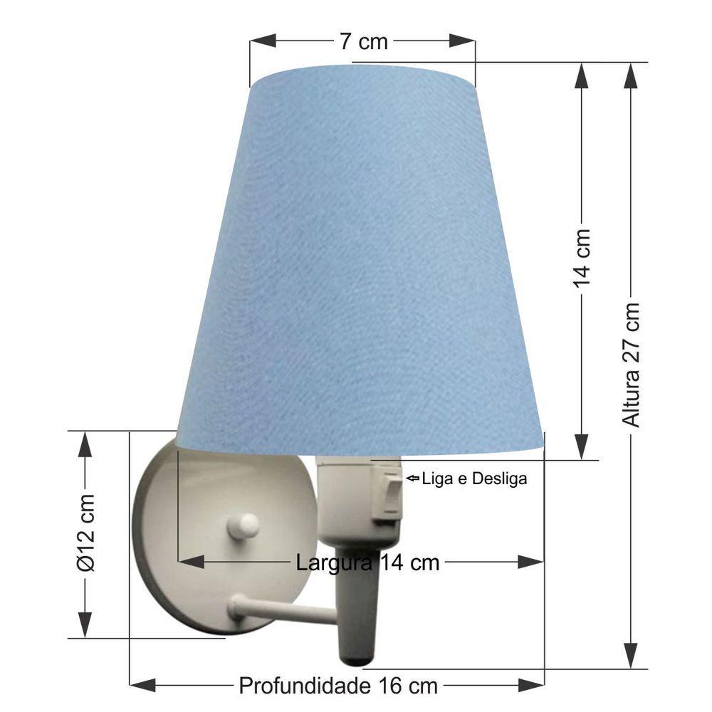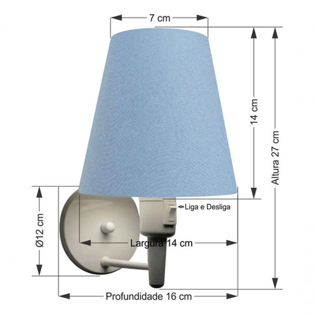 Arandela Cone Md-2013 Branco C- Inter Liga E Desl Cúpula Em Tecido Azul Bebê - Bivolt