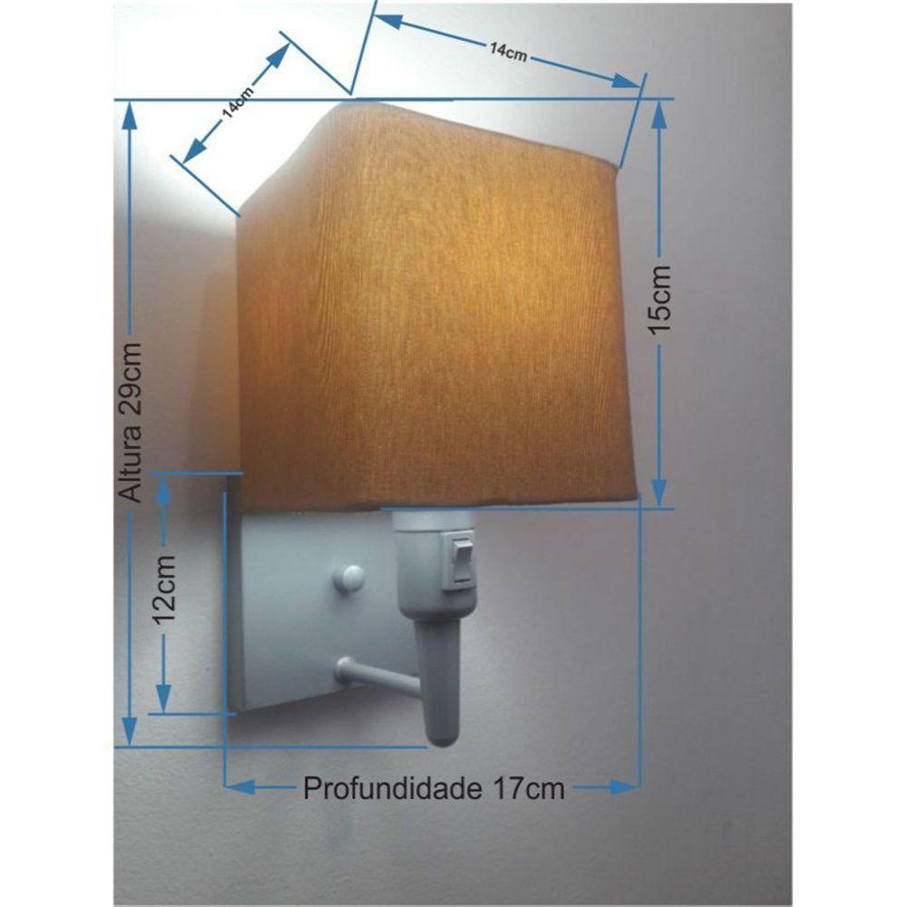 Arandela Quadrada Md-2019 Cinza C/ Inter Liga E Desl Cúpula Em Tecido Palha - BivoltArandela de parede Quadrada Md-2019 Cinza C/ Inter Liga e Desl Cúpula Tecido PalhaAs arandelas Lustres Vivare são elementos versáteis e elegantes que podem transformar qualquer ambiente em um espaço cheio de estilo. Seja para adicionar uma iluminação suave, destacar uma parede ou criar um efeito de luz diferenciado.Dimensão:Cúpula em Tecido: 15x14x14cmArandela de parede Montada: Altura 29cm Largura 14cm Profundidade 17cmFormato: QuadradoTamanho: PequenoEspecificação:Material: Cúpula em TecidoEstrutura em AlumínioBase Parede: Quadrado 12x12x2cmResistente: Á MaresiaVoltagem: 110V/220VLiga e Desliga: Interruptor no SoqueteTipo de Soquete: E27Lâmpada Utilizada: Led Bulbo Até 16w ou Fluorescente Espiral Até 25w CadaCapacidade de Lâmpadas: 1Observação:Acompanha Lâmpada: NãoPossui Led Integrado: NãoGarantia: 12 MesesManual de Instalação: SimArandela de parede Montada: SimControle de Luminosidade: NãoTipo de Embalagem: CaixaConservação e Manutenção do Produto:A Limpeza deve ser realizada com o produto desligado. Remova o lustre que pode ser lavado com sabão neutro. Nunca utilize produtos químicos e abrasivosDica:Antes de comprar o seu produto verifique as medidas, o local onde pretende instalar e se necessário o serviço de um profissional qualificado.