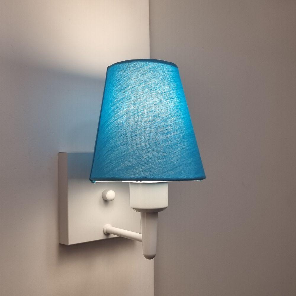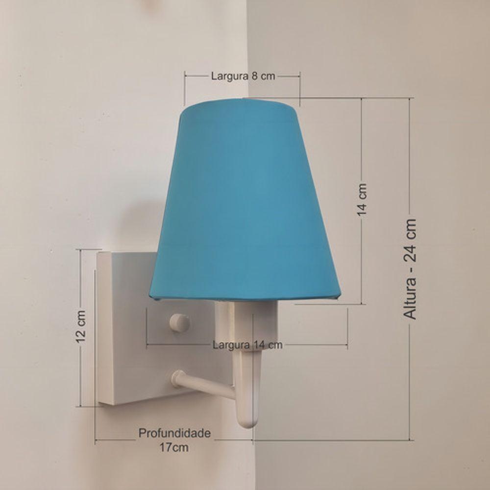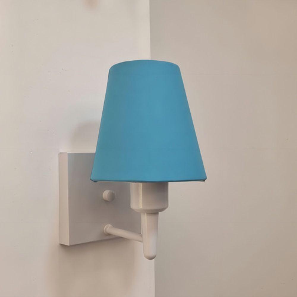 Arandela Quadrada Md-2034 Branco Cúpula Em Tecido Cone Azul Bebê - Bivolt