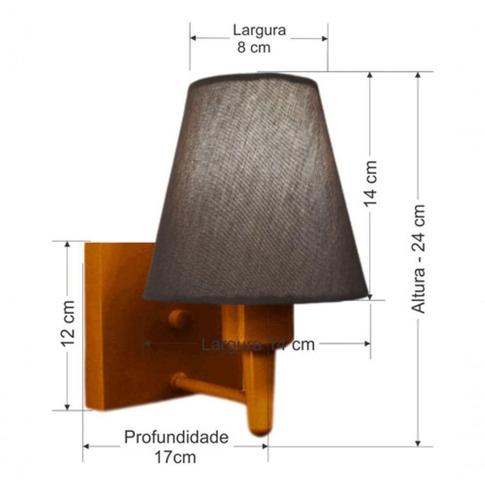 Arandela Quadrada Md-2034 Cobre Cúpula Em Tecido Cone Cinza Escuro - BivoltArandela de parede Quadrada Md-2034 Cobre Cúpula em Tecido Cone Cinza Escuro - BivoltAs arandelas Lustres Vivare são elementos versáteis e elegantes que podem transformar qualquer ambiente em um espaço cheio de estilo. Seja para adicionar uma iluminação suave, destacar uma parede ou criar um efeito de luz diferenciado.Dimensão:Cúpula em Tecido: 14x07x14cmArandela de parede Montada: Altura 24cm Largura 14cm Profundidade 17cmFormato: Quadrado / ConeTamanho: PequenoEspecificação:Material: Cúpula em TecidoEstrutura em AlumínioBase Parede: Quadrado 12x12x2cmResistente: Á MaresiaVoltagem: 110V/220VLiga e Desliga: NãoTipo de Soquete: E27Lâmpada Utilizada: Led Bulbo Até 16w ou Fluorescente Espiral Até 25w cadaCapacidade de Lâmpadas: 1Observação:Acompanha Lâmpada: NãoPossui Led Integrado: NãoGarantia: 12 MesesManual de Instalação: SimArandela de parede Montada: SimControle de Luminosidade: NãoTipo de Embalagem: CaixaConservação e Manutenção do Produto:A Limpeza deve ser realizada com o produto desligado. Remova o lustre que pode ser lavado com sabão neutro. Nunca utilize produtos químicos e abrasivosDica:Antes de comprar o seu produto verifique as medidas, o local onde pretende instalar e se necessário o serviço de um profissional qualificado.