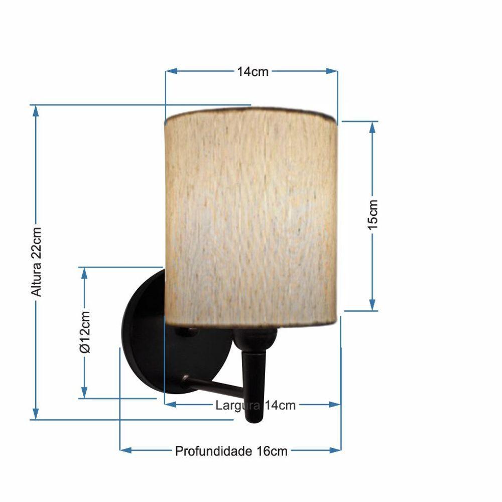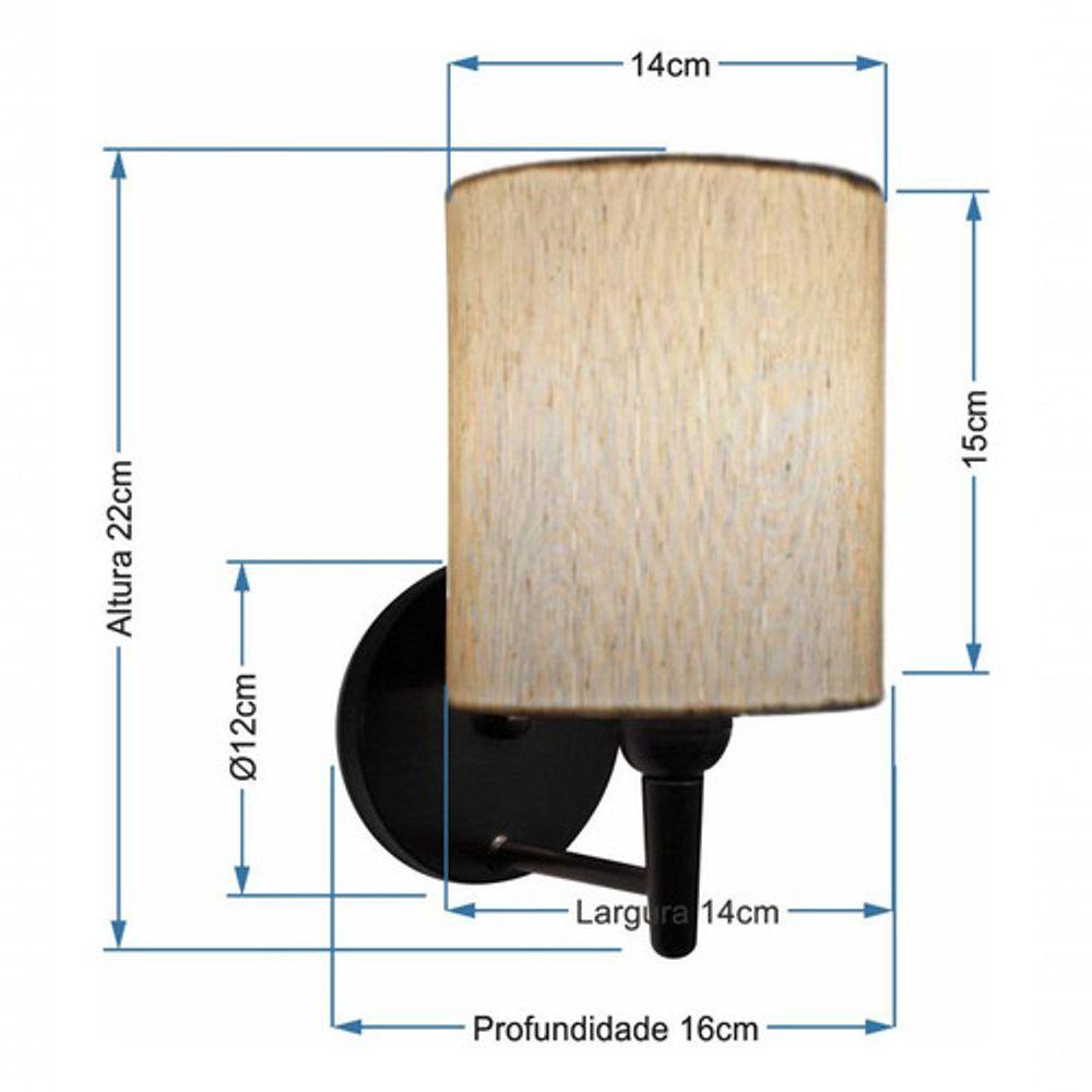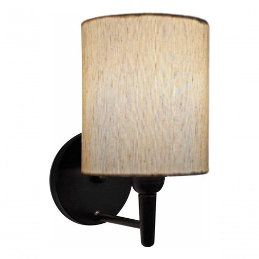 Arandela Cilíndrica Md-2009 Base Preto Cúpula Em Tecido 14x15cm Linho Bege - Bivolt