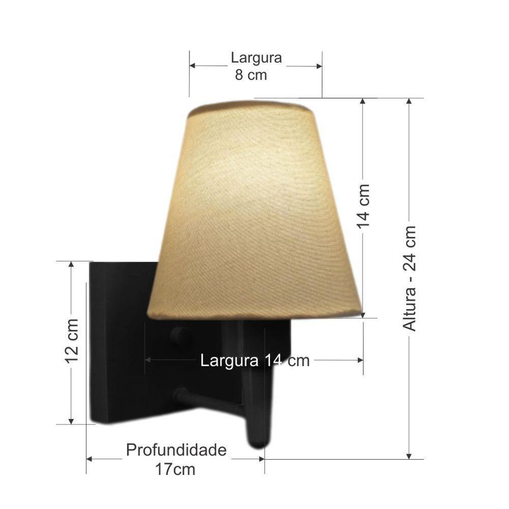 Arandela Quadrada Md-2034 Preto Cúpula Em Tecido Cone Algodão Crú - Bivolt