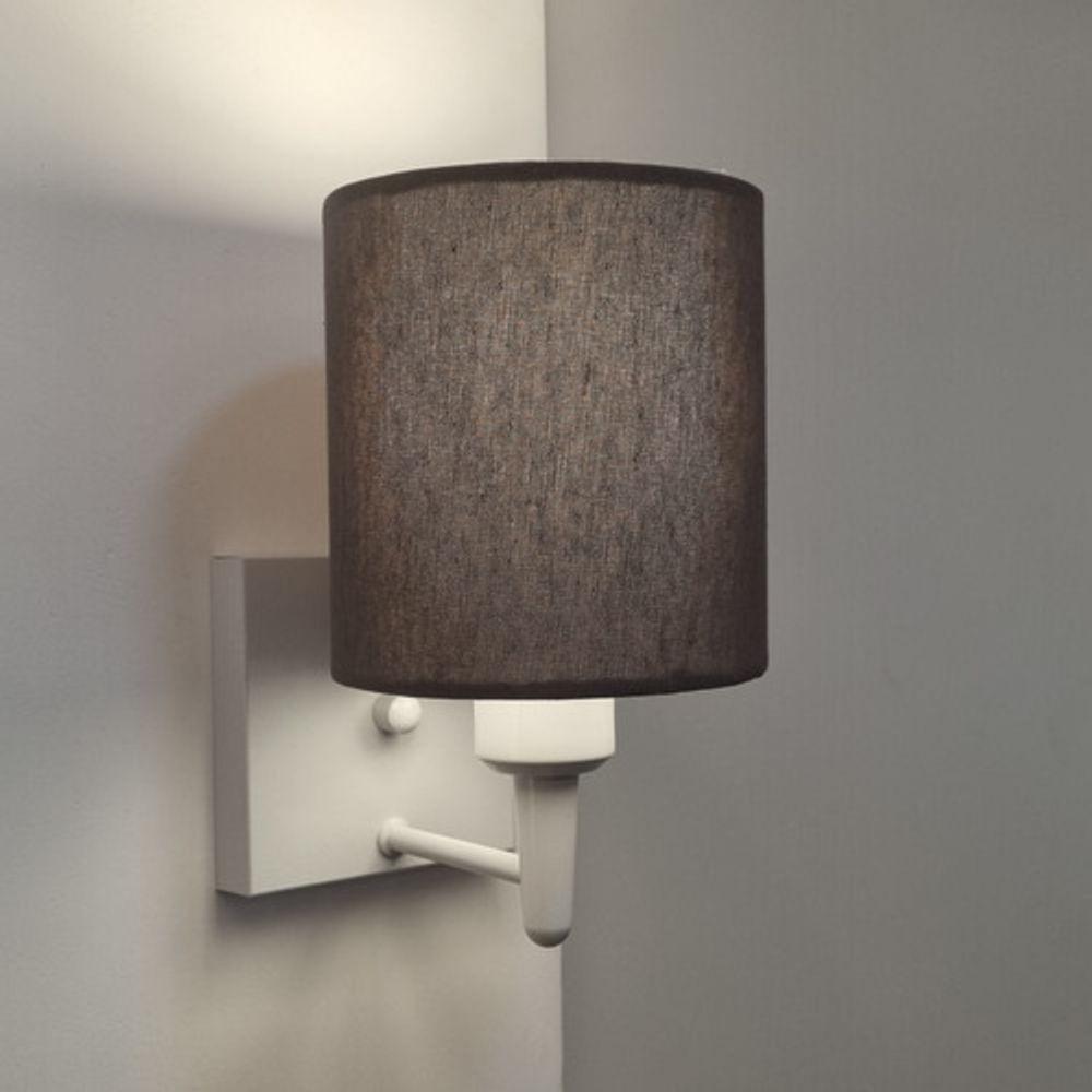 Arandela Quadrada Md-2033 Branco Cúpula Em Tecido Cilíndrica Cinza Escuro - Bivolt