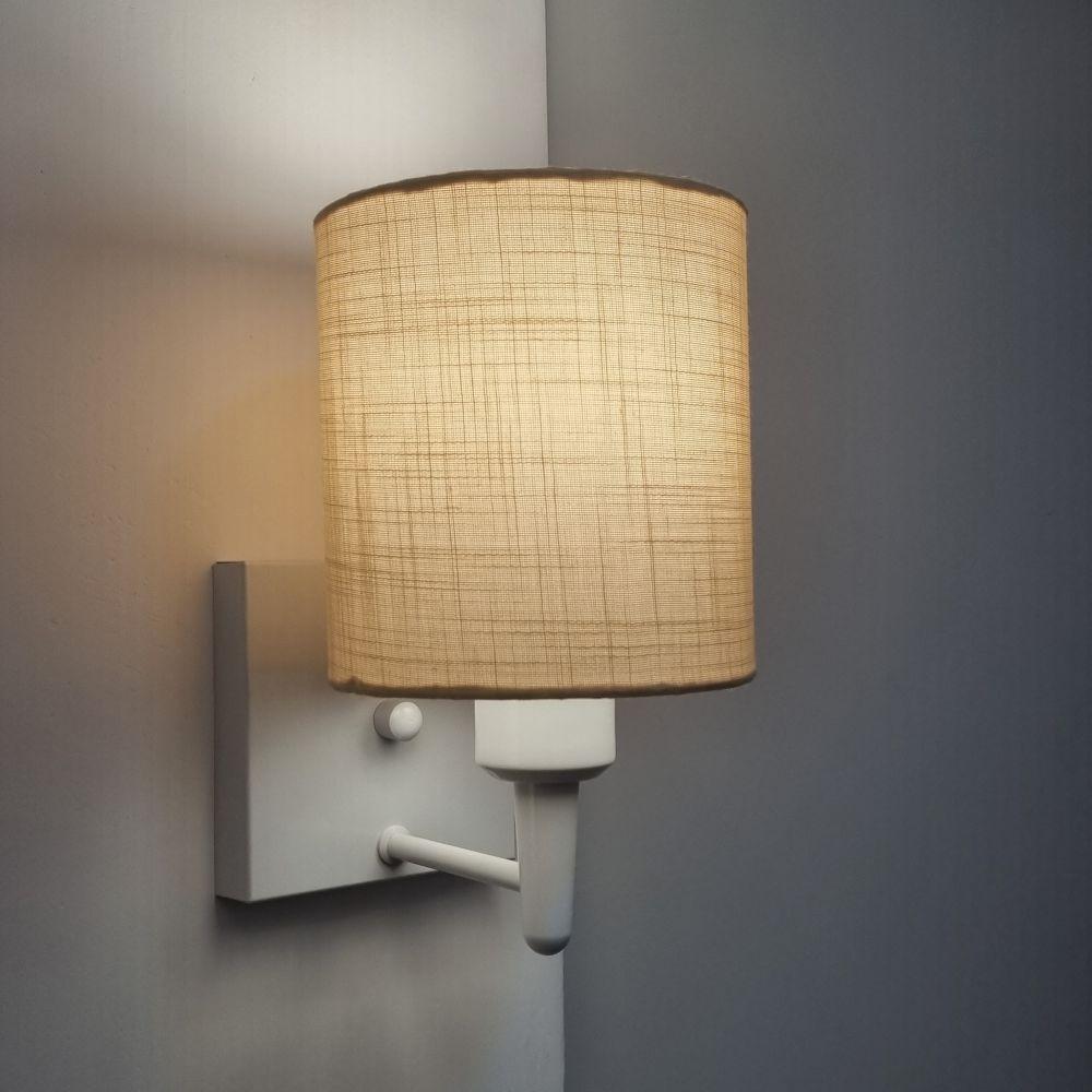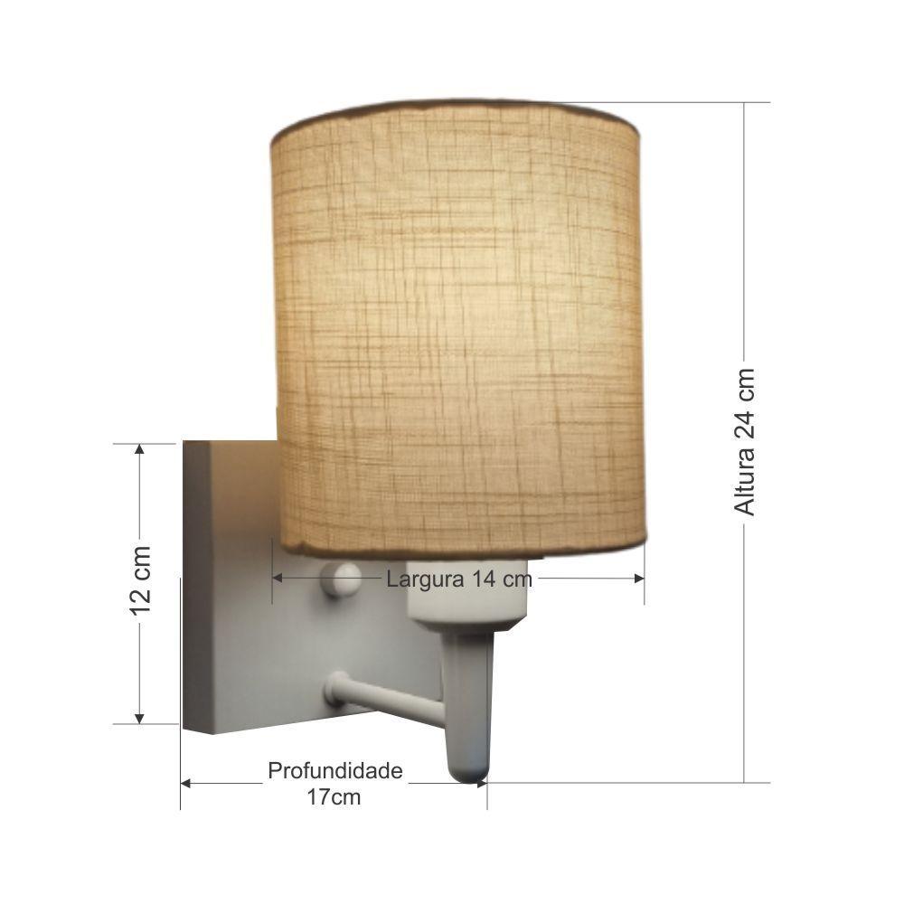 Arandela Quadrada Md-2033 Branco Cúpula Em Tecido Cilíndrica Palha - Bivolt