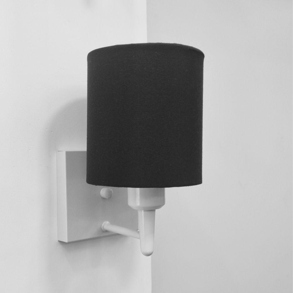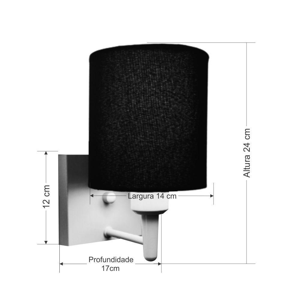 Arandela Quadrada Md-2033 Branco Cúpula Em Tecido Cilíndrica Preto - Bivolt