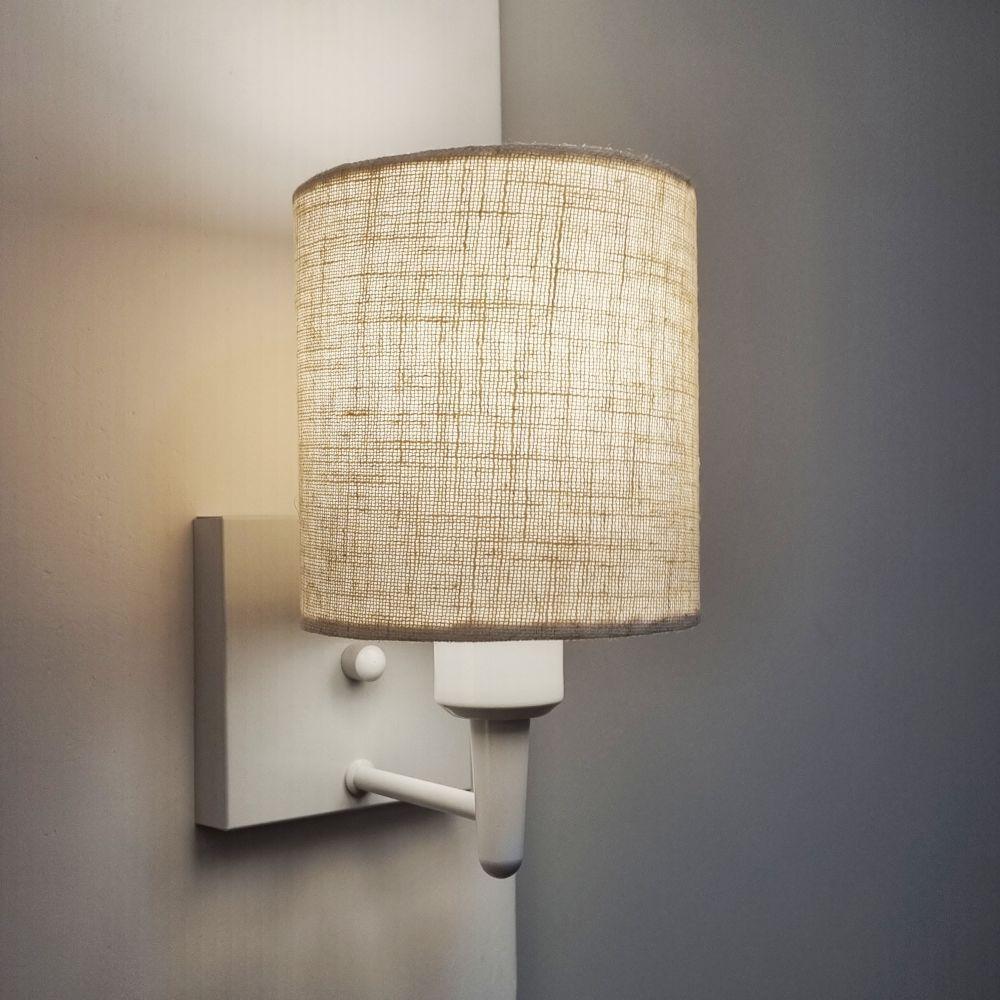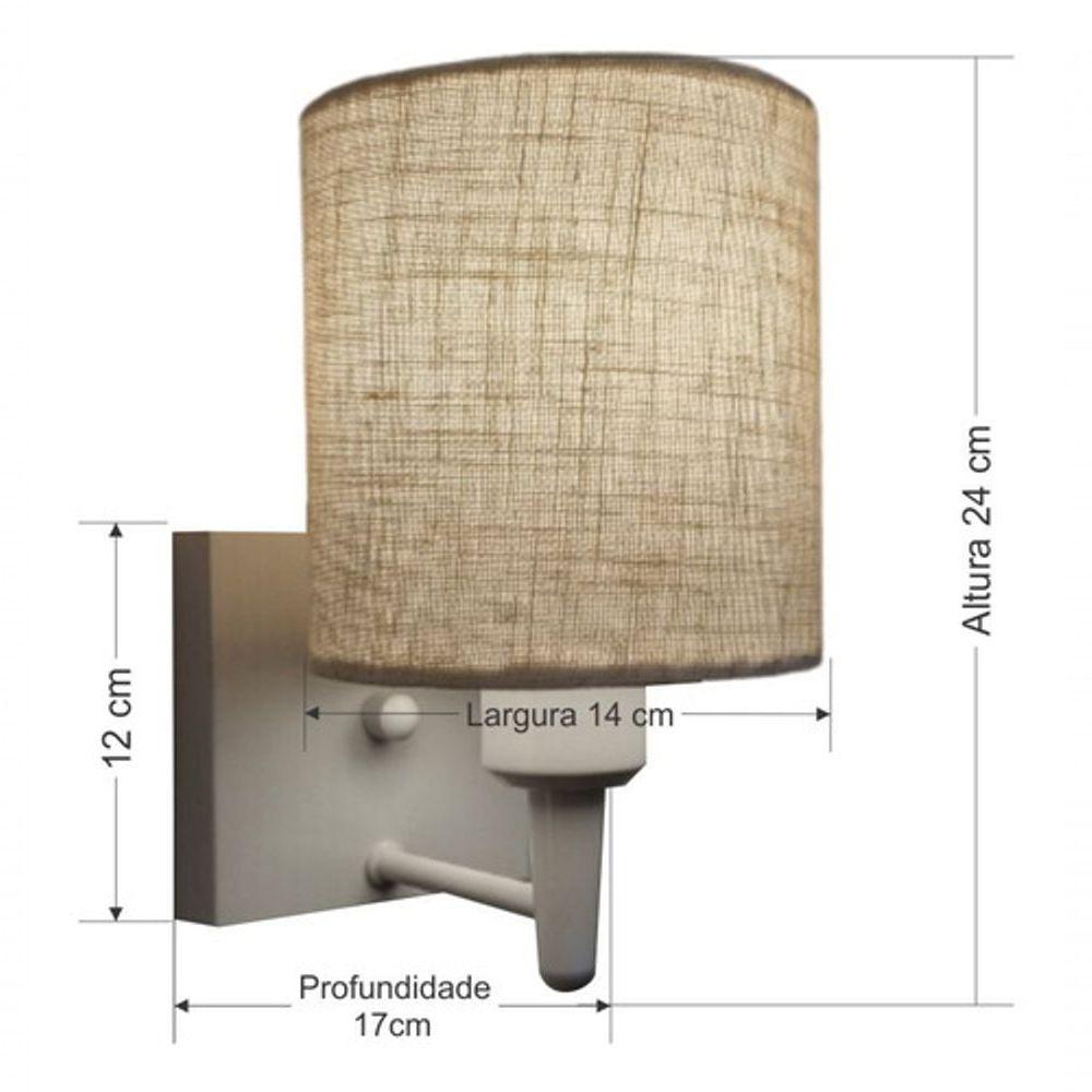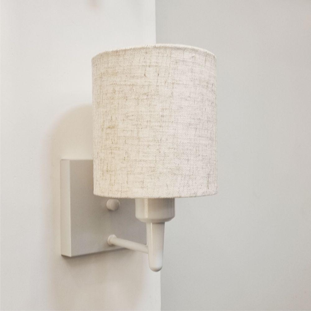 Arandela Quadrada Md-2033 Branco Cúpula Em Tecido Cilíndrica Rustico Bege - Bivolt