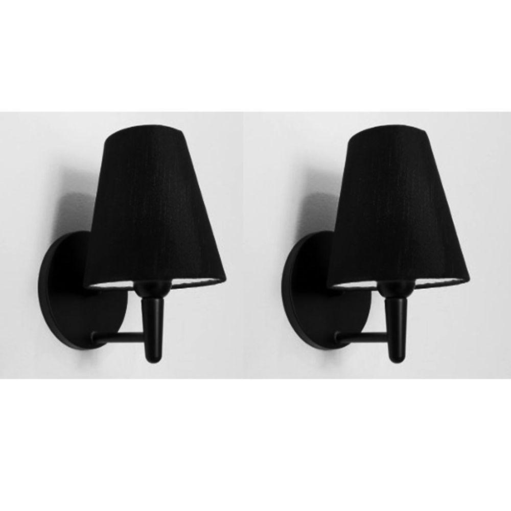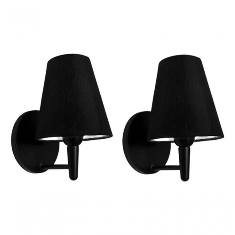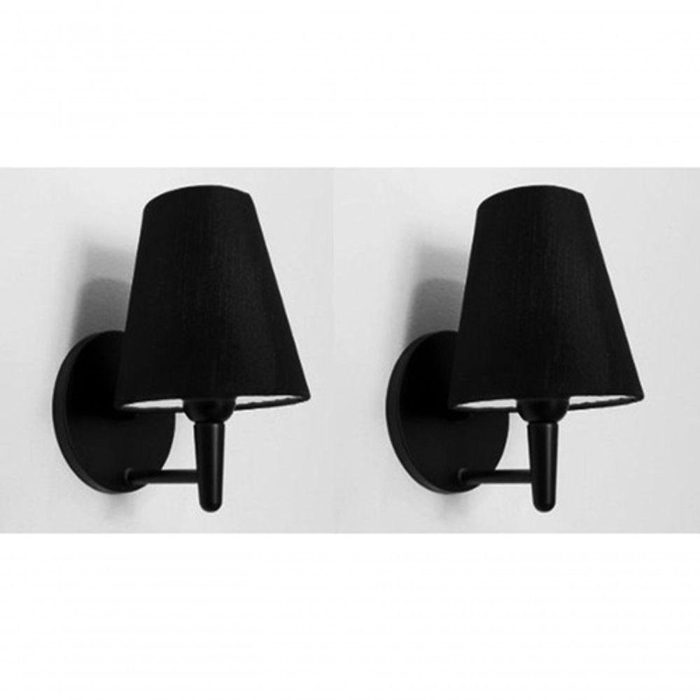 Kit-2 Arandela Cone Md-2004 Base Preto Cúpula Em Tecido 14-14x07cm Preto - Bivolt
