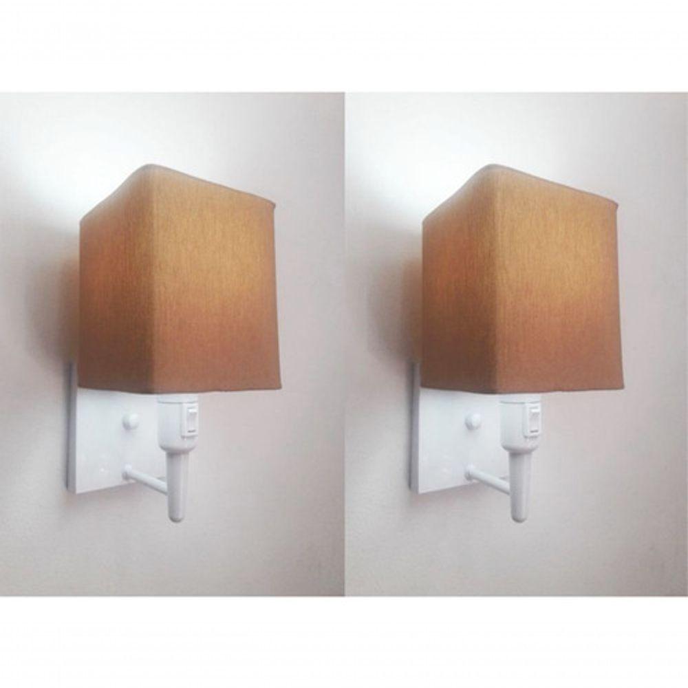 Kit-2 Arandela Quadrada Md-2019 Branco C- Inter Liga E Desl Cúpula Em Tecido Palha - Bivolt