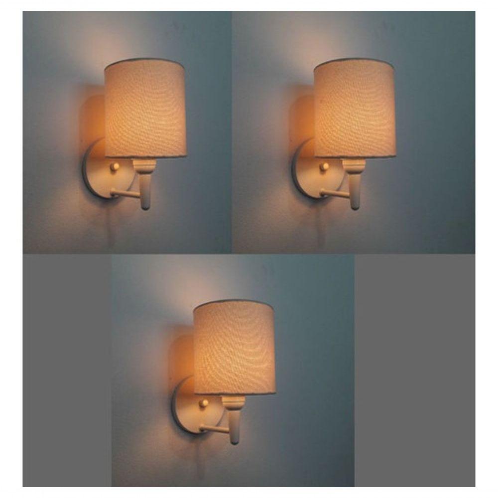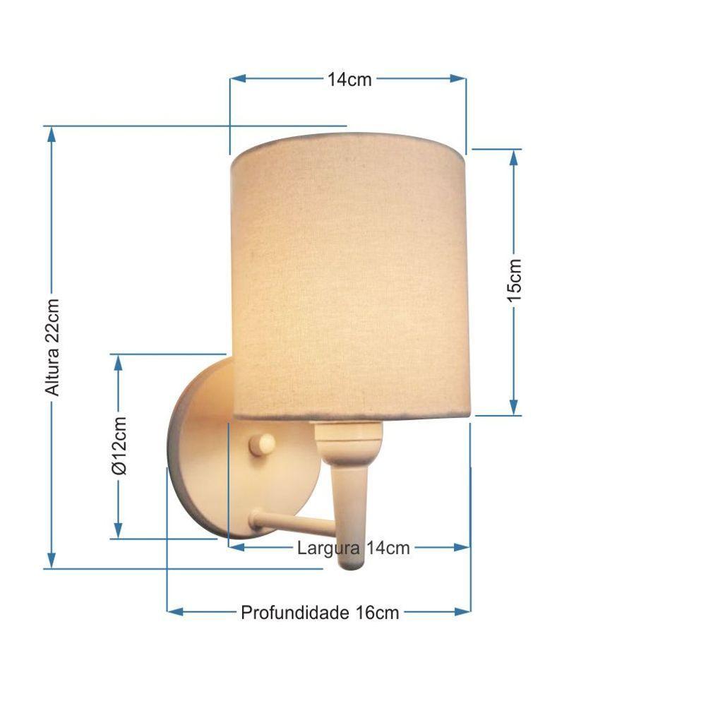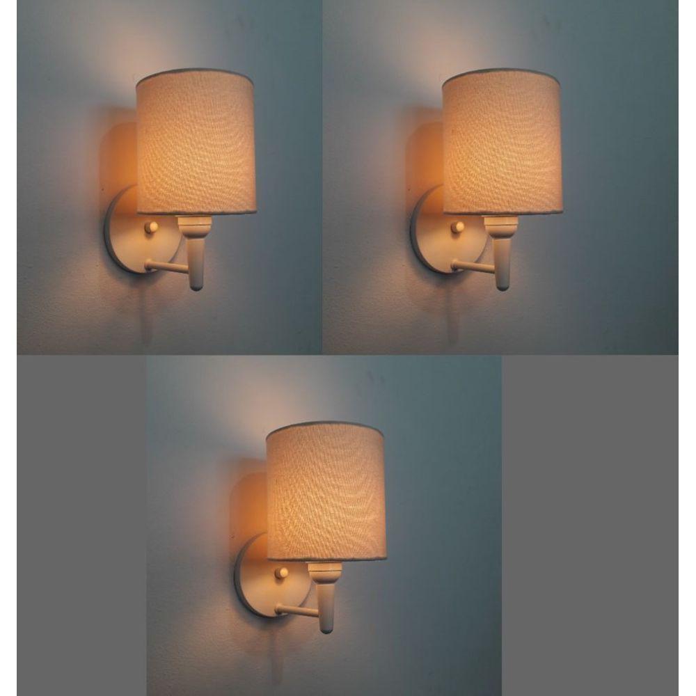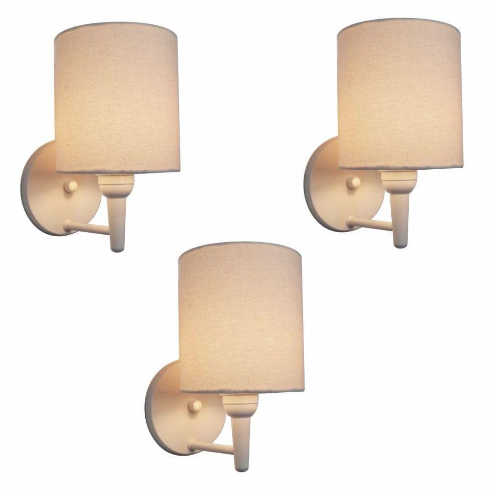 Kit-3 Arandela Cilíndrica Md-2009 Base Branco Cúpula Em Tecido 14x15cm Algodão Crú - Bivolt