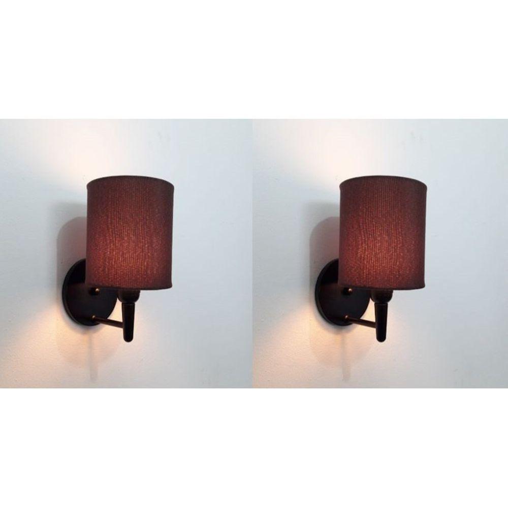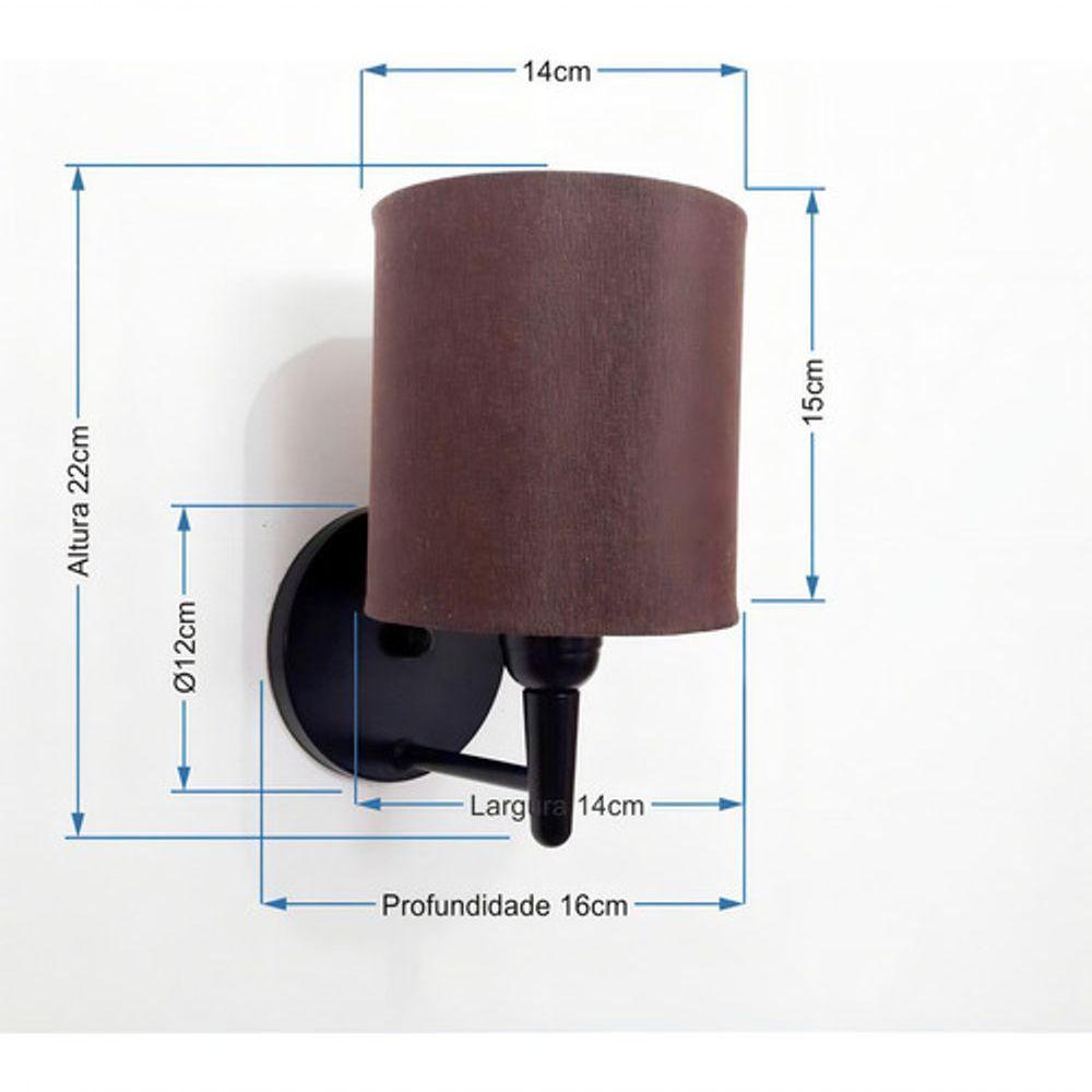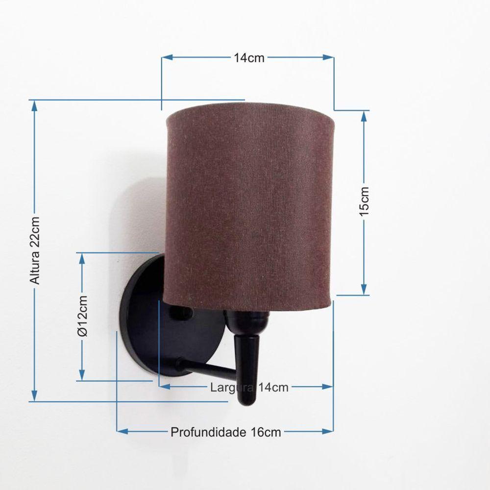 Kit-2 Arandela Cilíndrica Md-2009 Base Preto Cúpula Em Tecido 14x15cm Café - Bivolt