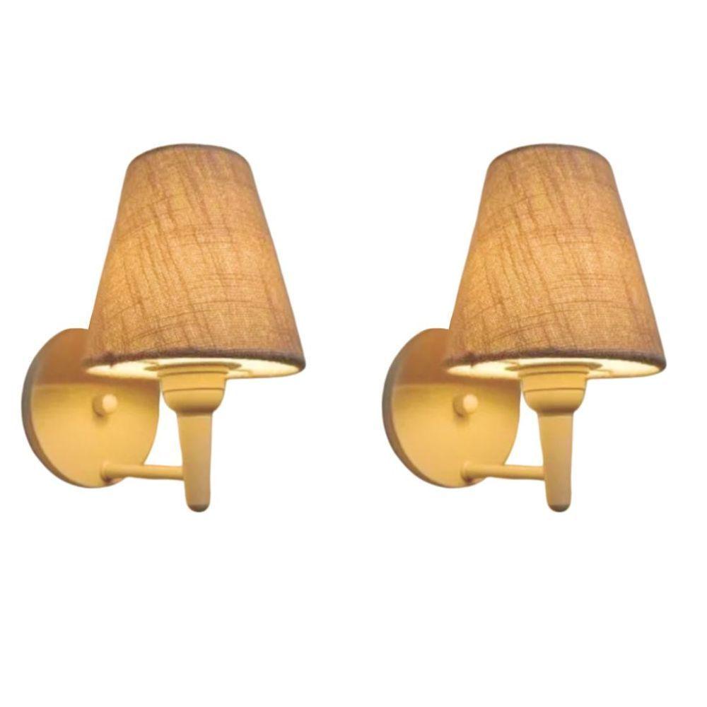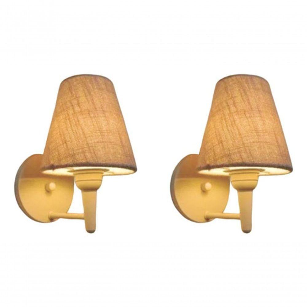 Kit-2 Arandela Cone Md-2004 Base Branco Cúpula Em Tecido 14-14x07cm Rustico Bege - Bivolt