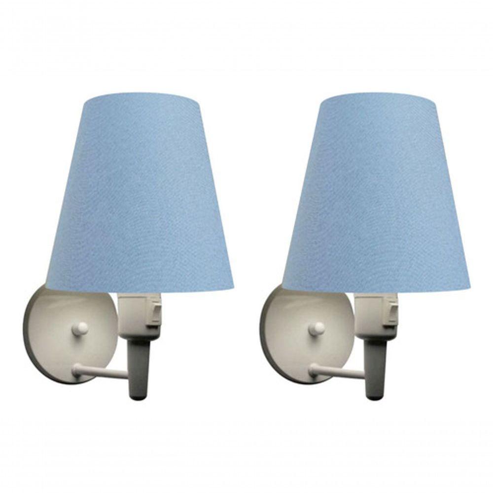 Kit-2 Arandela Cone Md-2013 Branco C- Inter Liga E Desl Cúpula Em Tecido Azul Bebê - Bivolt