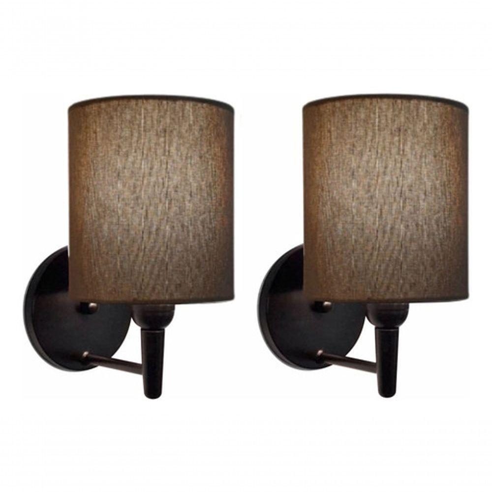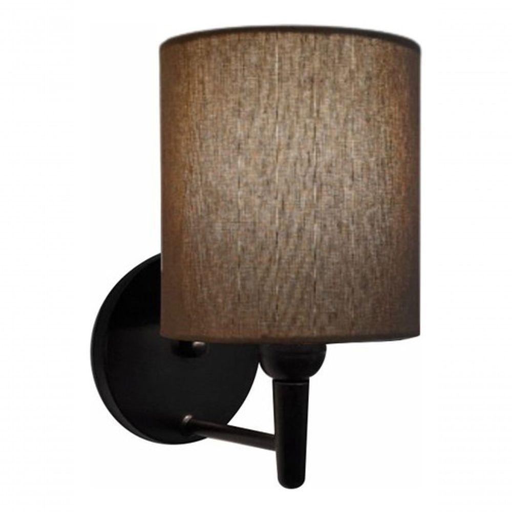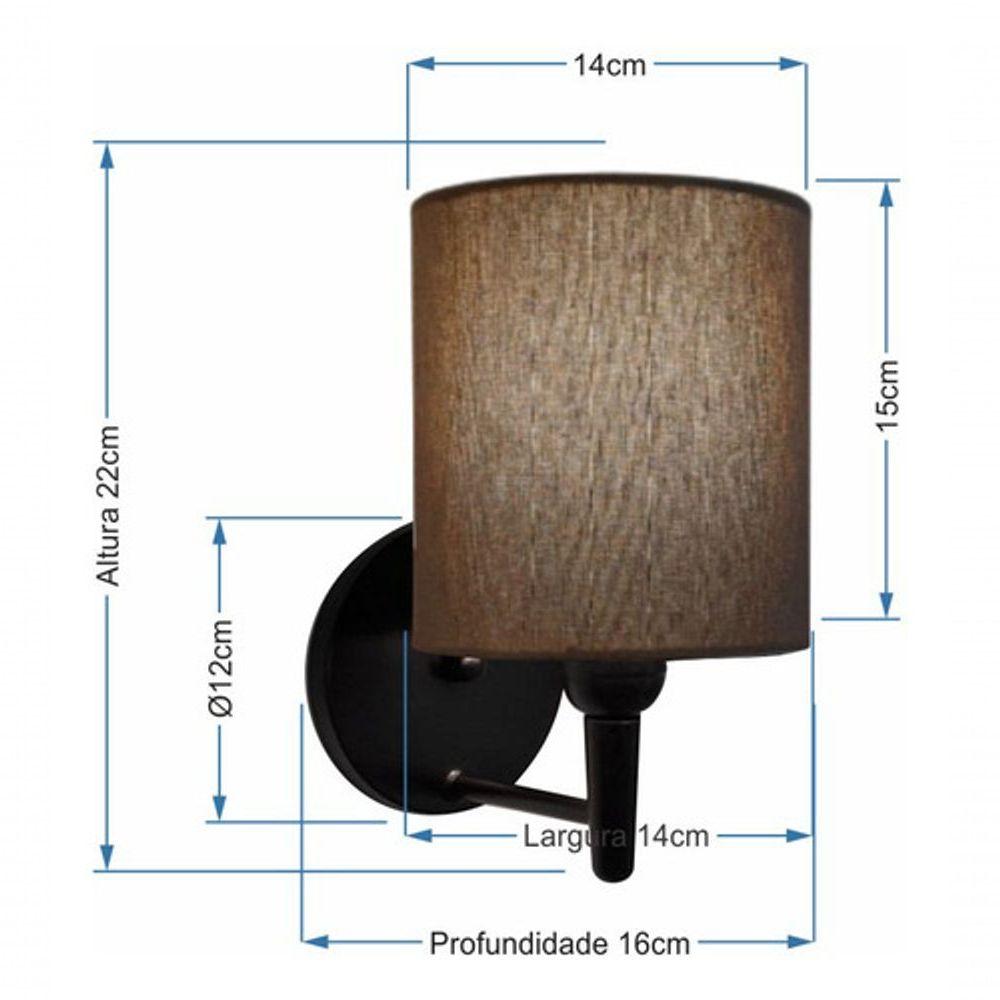 Kit-2 Arandela Cilíndrica Md-2009 Base Preto Cúpula Em Tecido 14x15cm Caqui - Bivolt