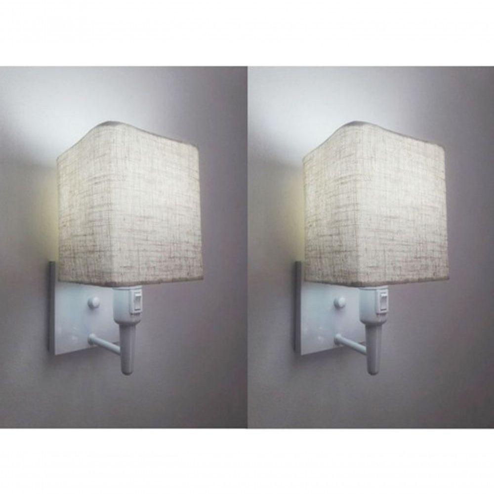 Kit-2 Arandela Quadrada Md-2019 Branco C- Inter Liga E Desl Cúpula Rustico Bege - Bivolt