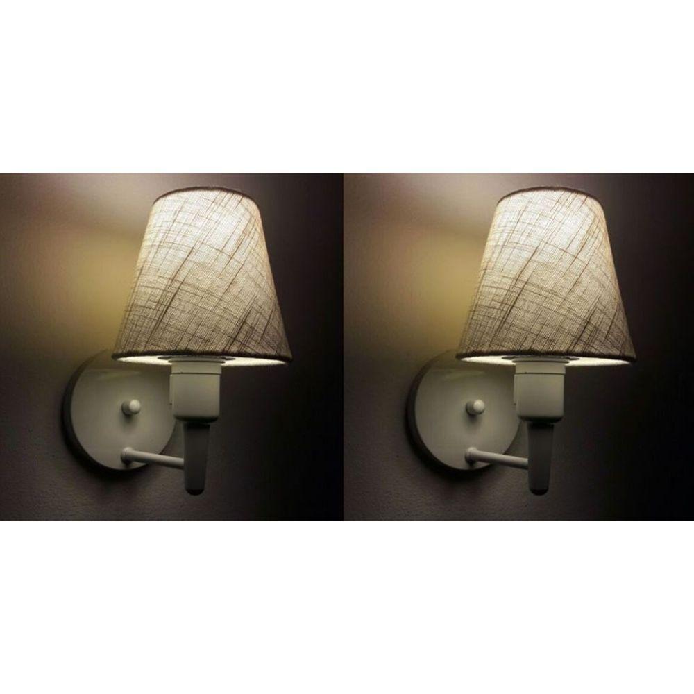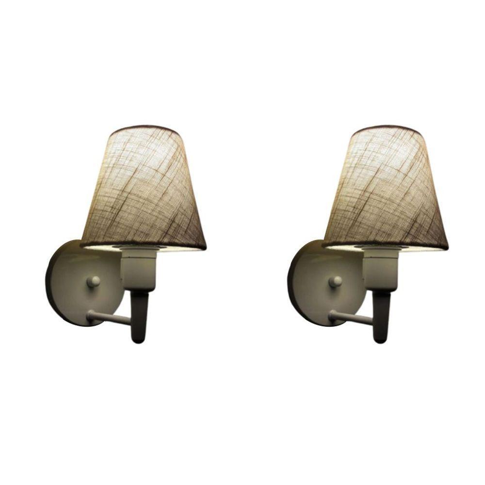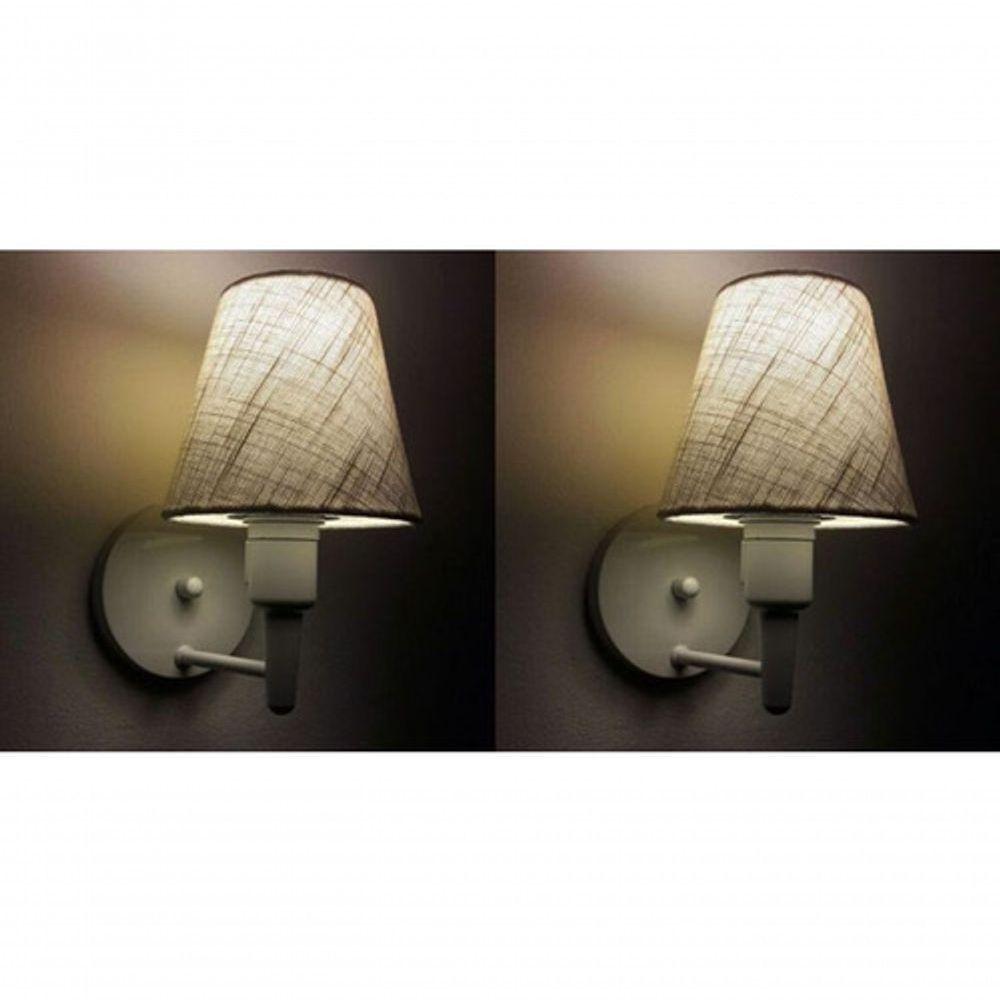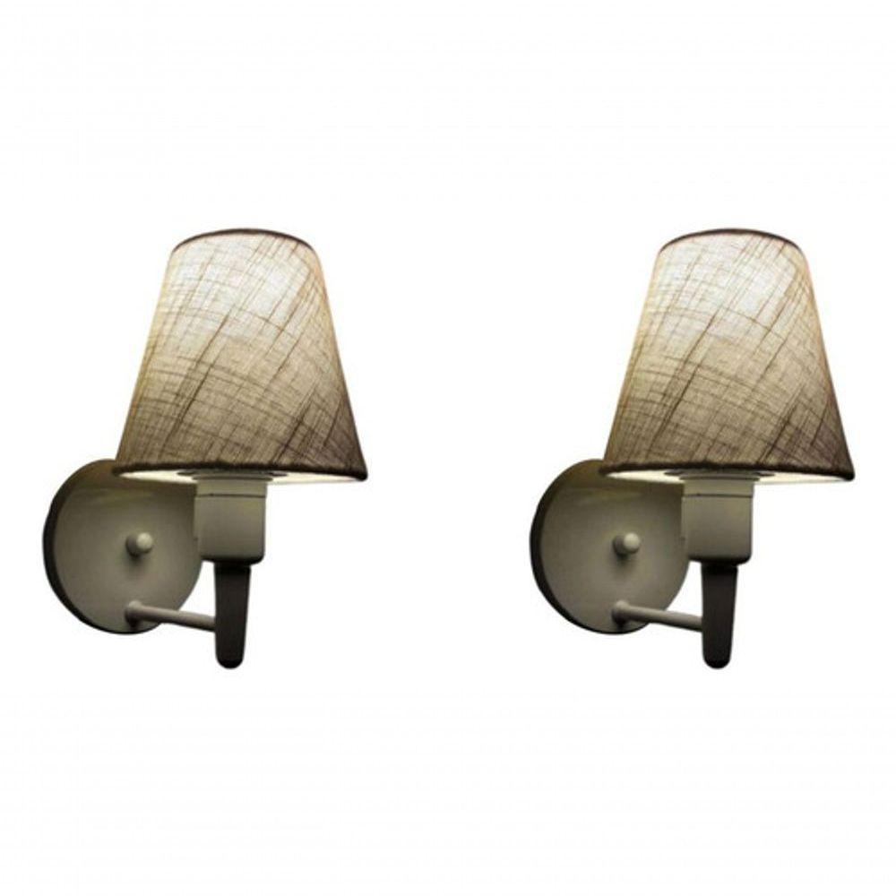 Kit-2 Arandela Cone Md-2012 Branco C- Inter Liga E Desl Cúpula Em Tecido Rustico Bege - Bivolt