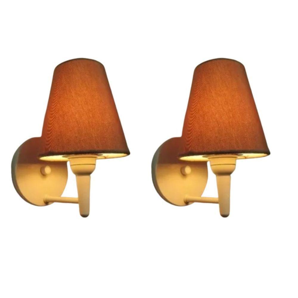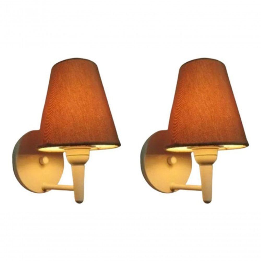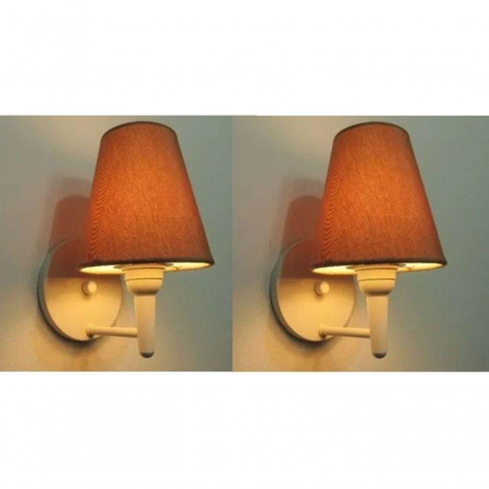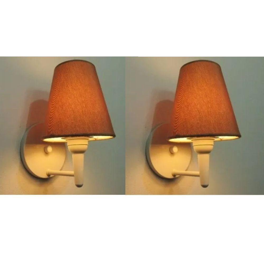Kit-2 Arandela Cone Md-2004 Base Branco Cúpula Em Tecido 14-14x07cm Palha - Bivolt
