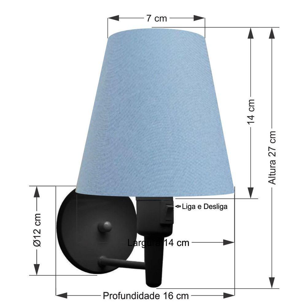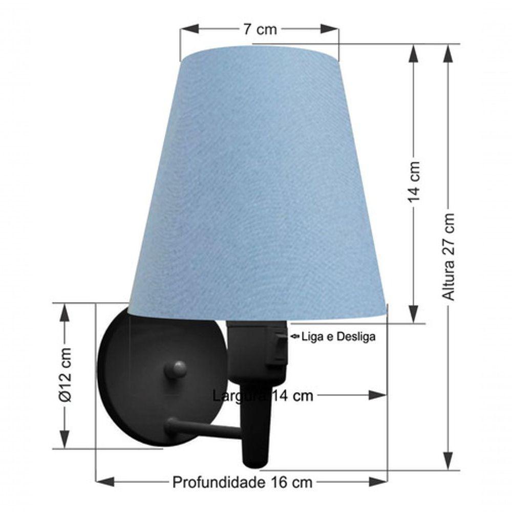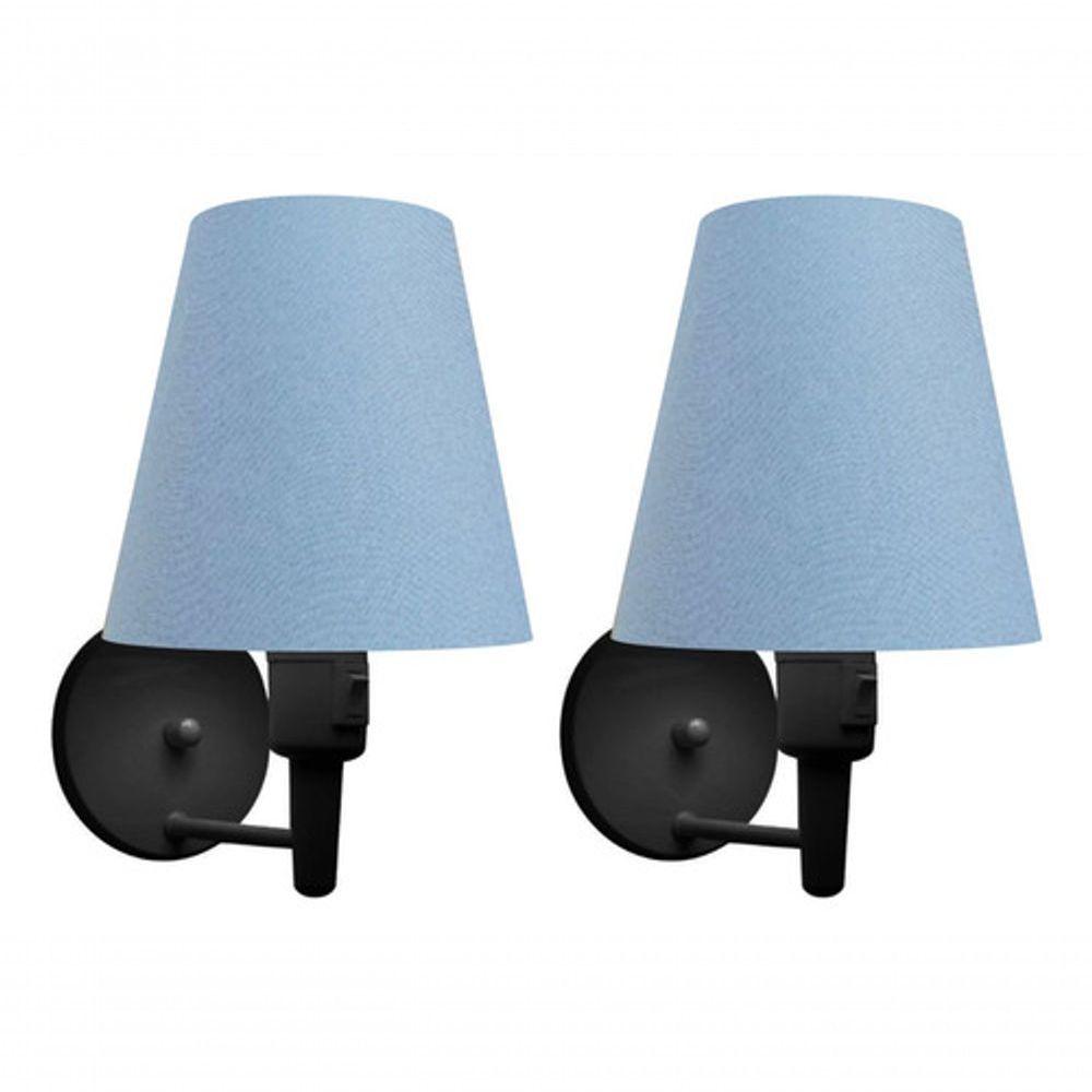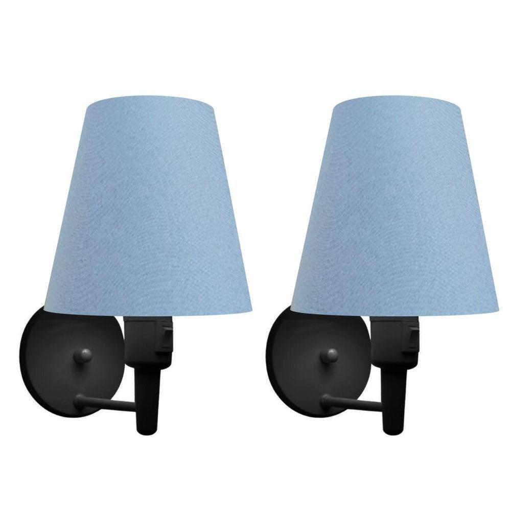 Kit-2 Arandela Cone Md-2013 Preto C- Inter Liga E Desl Cúpula Em Tecido Azul Bebê - Bivolt