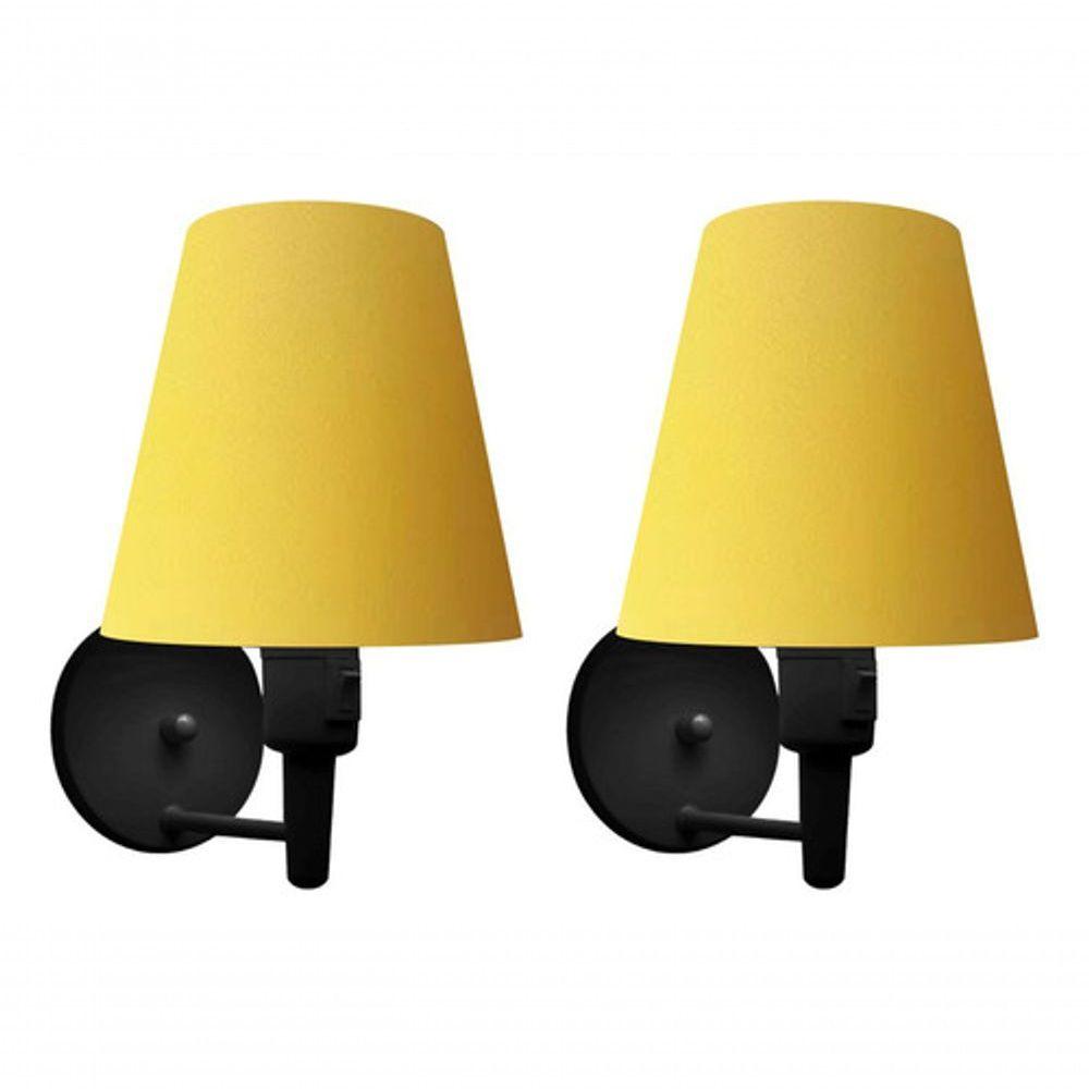 Kit-2 Arandela Cone Md-2013 Preto C- Inter Liga E Desl Cúpula Em Tecido Amarelo - Bivolt