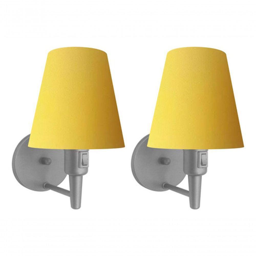 Kit-2 Arandela Cone Md-2013 Cinza C- Inter Liga E Desl Cúpula Em Tecido Amarelo - Bivolt