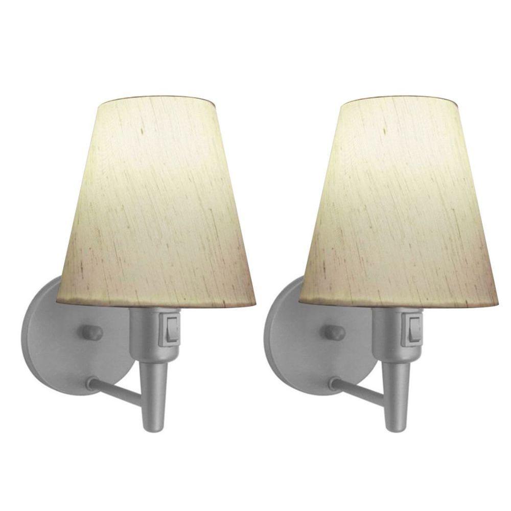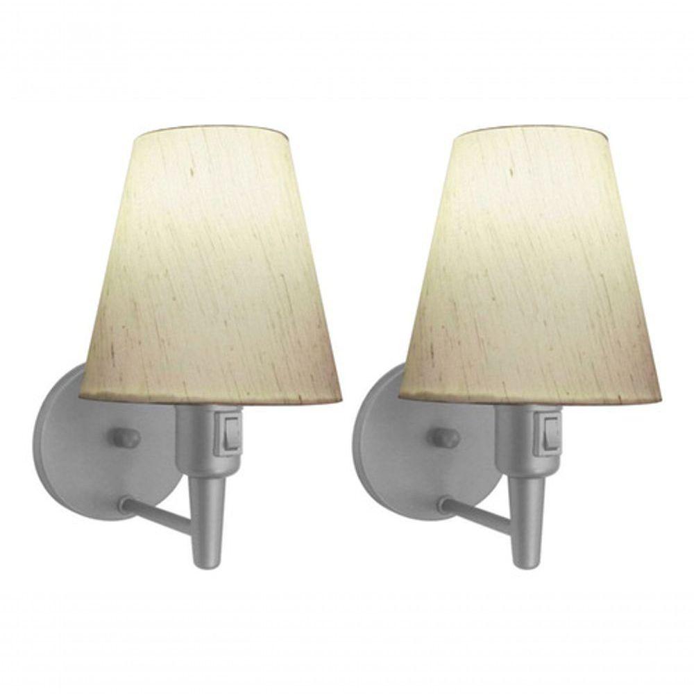 Kit-2 Arandela Cone Md-2013 Cinza C- Inter Liga E Desl Cúpula Em Tecido Linho Bege - Bivolt
