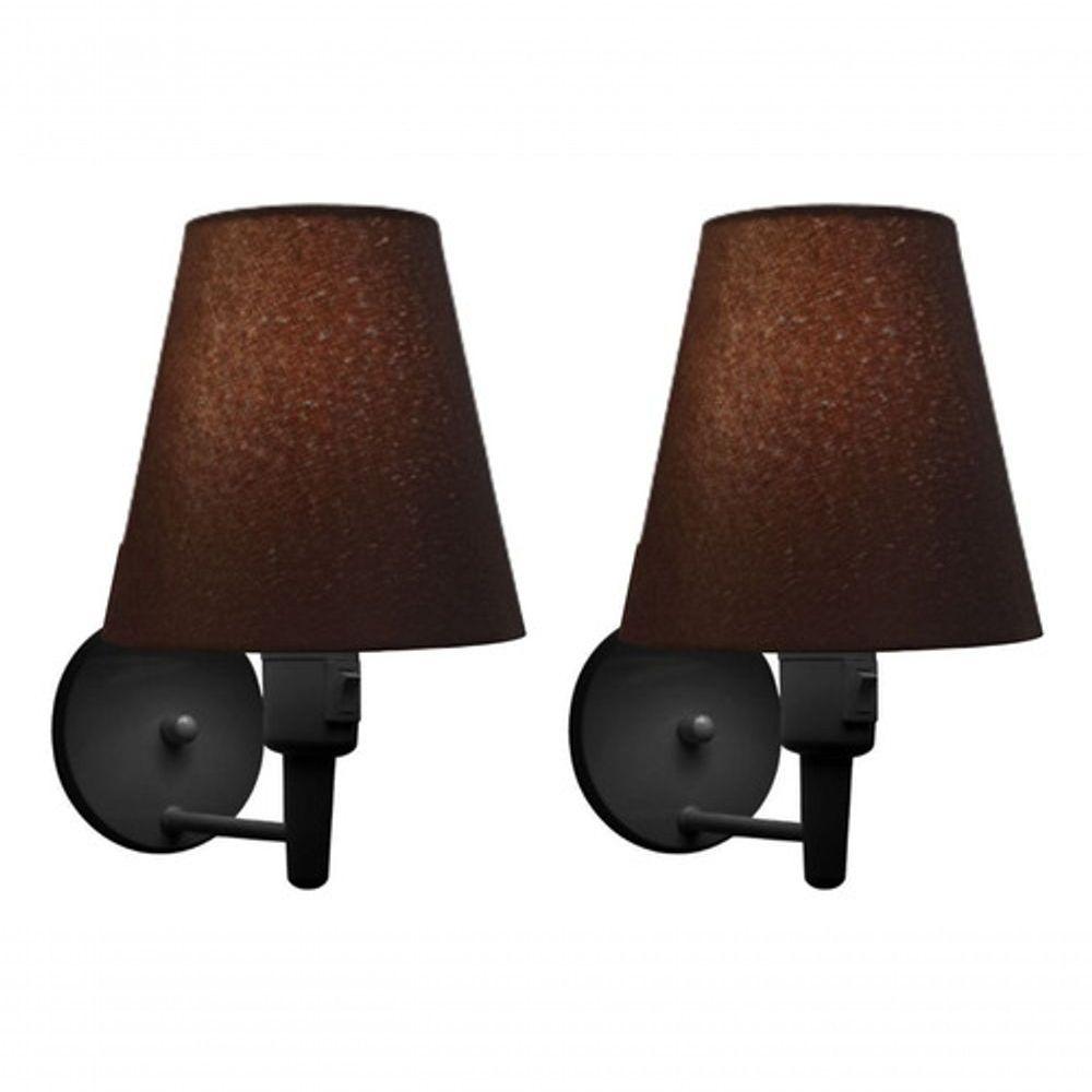 Kit-2 Arandela Cone Md-2013 Preto C- Inter Liga E Desl Cúpula Em Tecido Café - Bivolt