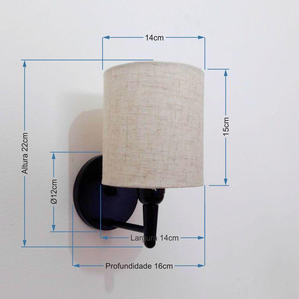 Arandela Cilíndrica Vivare Md-2009 Base Preto Cúpula Em Tecido - Bivolt Preto-rustico-bege1 127/220v