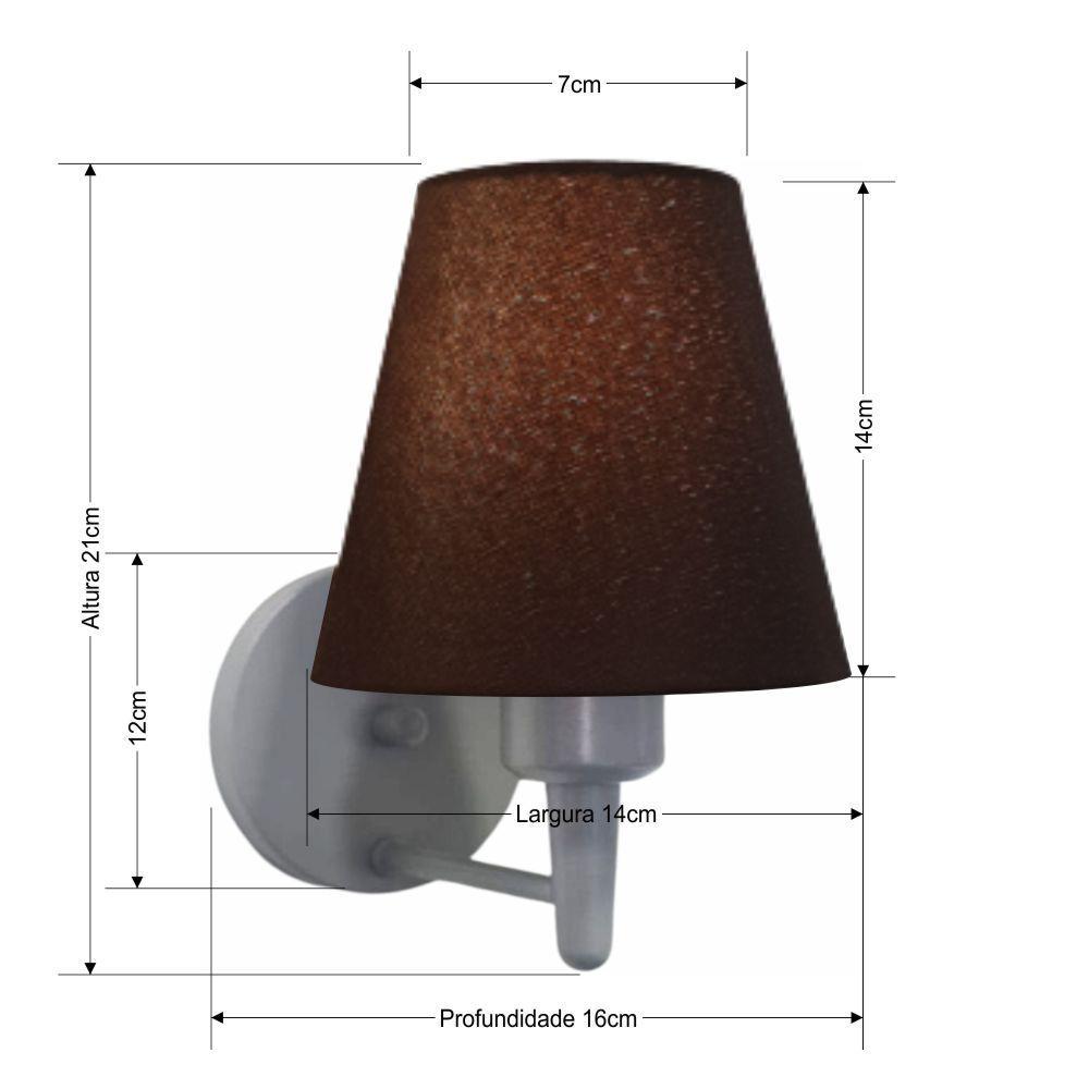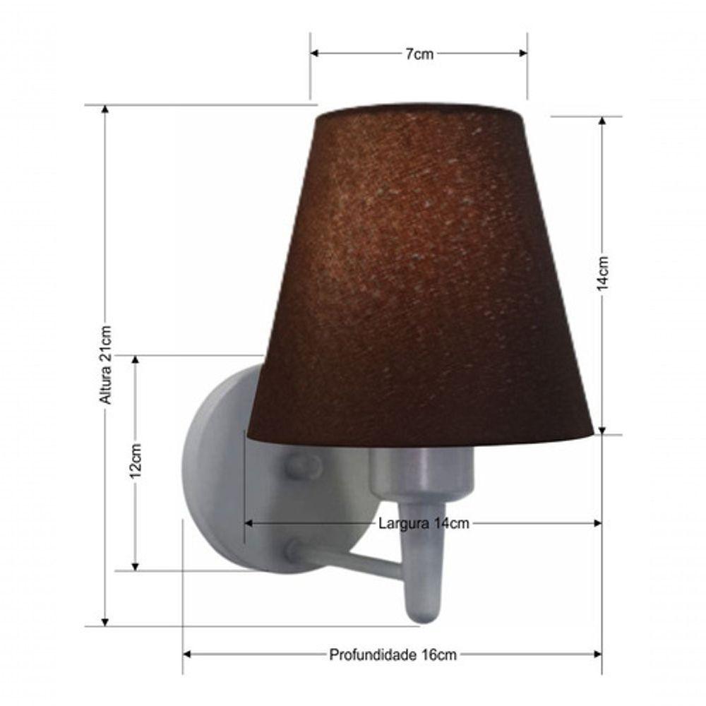 Arandela Parede Vivare Md-2004 Cinza Cúpula Em Tecido - Bivolt Cinza-café 127/220vArandela Parede Vivare Md-2004 Cinza Cúpula em Tecido - BivoltAs arandelas Lustres Vivare são elementos versáteis e elegantes que podem transformar qualquer ambiente em um espaço cheio de estilo. Seja para adicionar uma iluminação suave, destacar uma parede de quarto ou sala e criar um efeito de luz diferenciado.Dimensão:Cúpula em Tecido: 14x7x14cmArandela de parede Montada: Altura 21cm Largura 14cm Profundidade 16cmFormato: ConeTamanho: PequenoEspecificação:Material: Cúpula em TecidoEstrutura em AlumínioBase Parede: Diâmetro 11x1,2cmResistente: Á MaresiaVoltagem: 110V/220VLiga e Desliga: NãoTipo de Soquete: E27Lâmpada Utilizada: Led Bulbo Até 16w ou Fluorescente Espiral Até 25w CadaCapacidade de Lâmpadas: 1Observação:Acompanha Lâmpada: NãoPossui Led Integrado: NãoGarantia: 12 MesesManual de Instalação: SimArandela de parede Montada: SimControle de Luminosidade: NãoTipo de Embalagem: CaixaConservação e Manutenção do Produto:A Limpeza deve ser realizada com o produto desligado. Remova o lustre que pode ser lavado com sabão neutro. Nunca utilize produtos químicos e abrasivosDica:Antes de comprar o seu produto verifique as medidas, o local onde pretende instalar e se necessário o serviço de um profissional qualificado.