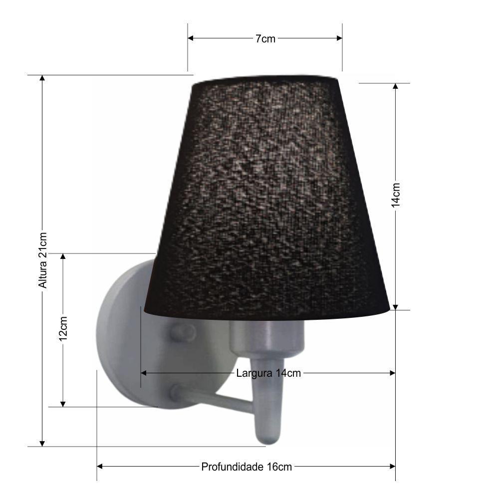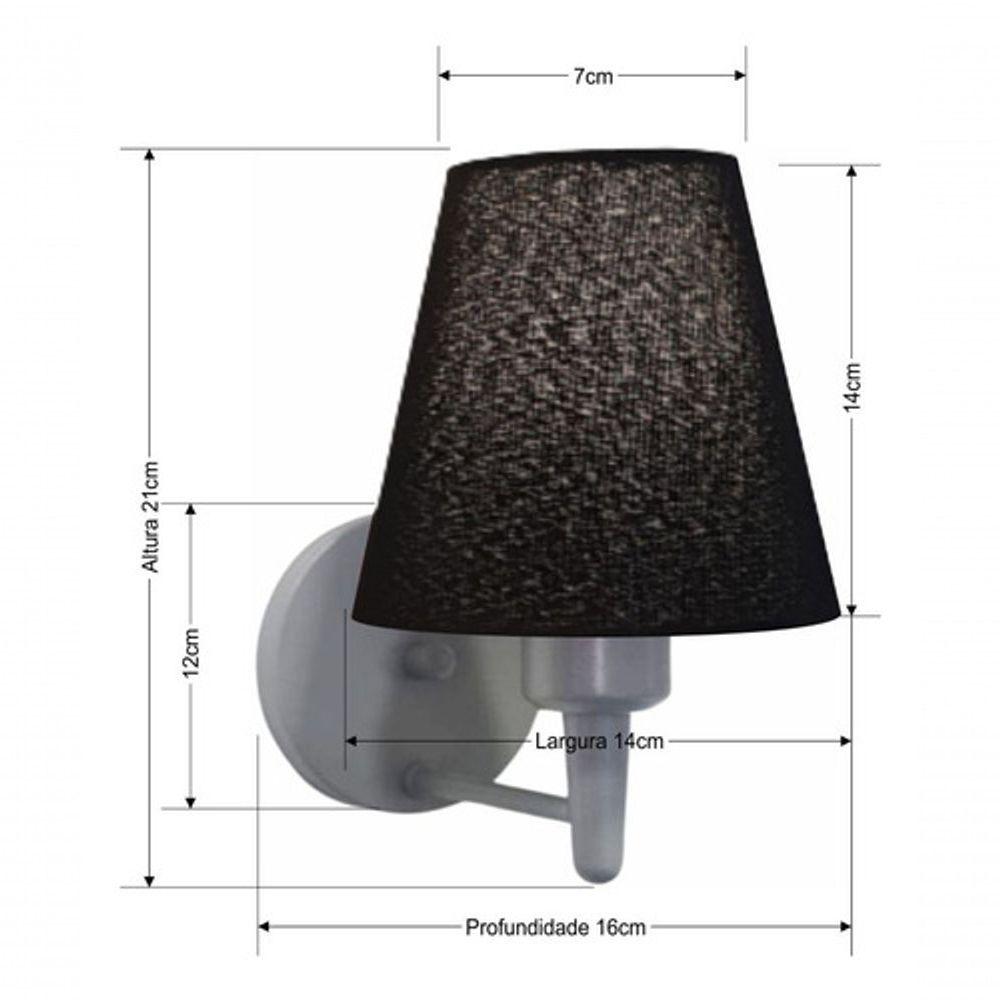 Arandela Parede Vivare Md-2004 Cinza Cúpula Em Tecido - Bivolt Cinza-preto 127/220vArandela Parede Vivare Md-2004 Cinza Cúpula em Tecido - BivoltAs arandelas Lustres Vivare são elementos versáteis e elegantes que podem transformar qualquer ambiente em um espaço cheio de estilo. Seja para adicionar uma iluminação suave, destacar uma parede de quarto ou sala e criar um efeito de luz diferenciado.Dimensão:Cúpula em Tecido: 14x7x14cmArandela de parede Montada: Altura 21cm Largura 14cm Profundidade 16cmFormato: ConeTamanho: PequenoEspecificação:Material: Cúpula em TecidoEstrutura em AlumínioBase Parede: Diâmetro 11x1,2cmResistente: Á MaresiaVoltagem: 110V/220VLiga e Desliga: NãoTipo de Soquete: E27Lâmpada Utilizada: Led Bulbo Até 16w ou Fluorescente Espiral Até 25w CadaCapacidade de Lâmpadas: 1Observação:Acompanha Lâmpada: NãoPossui Led Integrado: NãoGarantia: 12 MesesManual de Instalação: SimArandela de parede Montada: SimControle de Luminosidade: NãoTipo de Embalagem: CaixaConservação e Manutenção do Produto:A Limpeza deve ser realizada com o produto desligado. Remova o lustre que pode ser lavado com sabão neutro. Nunca utilize produtos químicos e abrasivosDica:Antes de comprar o seu produto verifique as medidas, o local onde pretende instalar e se necessário o serviço de um profissional qualificado.