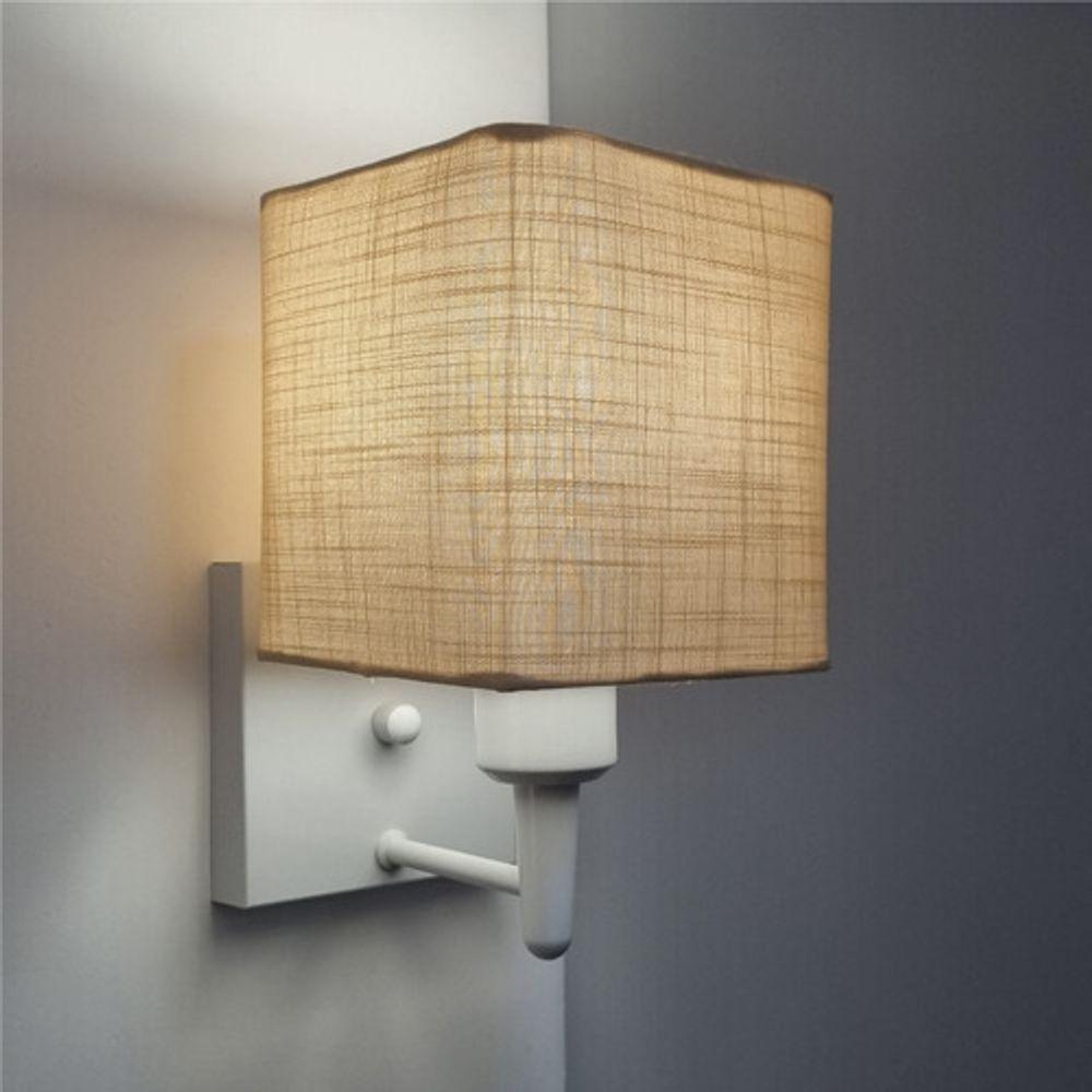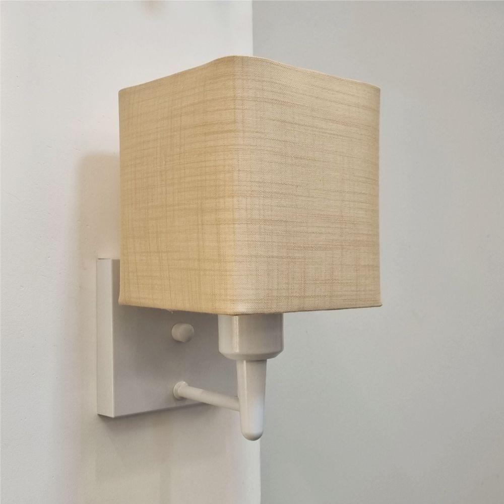 Arandela Quadrada Vivare Md-2006 Base Branco Cúpula Em Tecido - Bivolt Branco-palha 127-220v