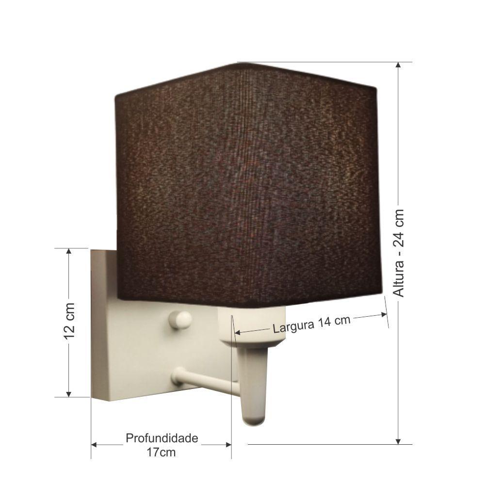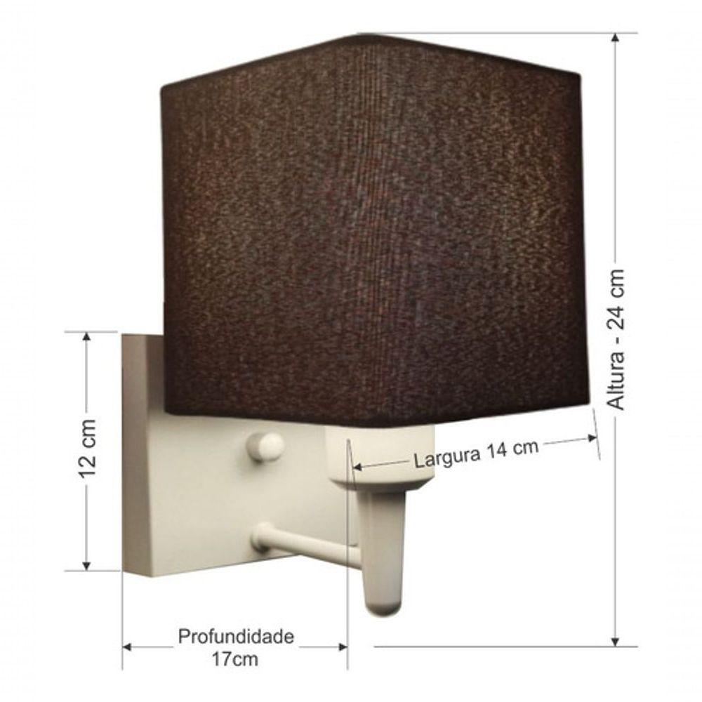 Arandela Quadrada Vivare Md-2006 Base Branco Cúpula Em Tecido - Bivolt Branco-café 127/220vArandela de parede Quadrada Vivare Md-2006 Base Branca Cúpula em TecidoAs arandelas Lustres Vivare são elementos versáteis e elegantes que podem transformar qualquer ambiente em um espaço cheio de estilo. Seja para adicionar uma iluminação suave, destacar uma parede ou criar um efeito de luz diferenciado.Dimensão:Cúpula em Tecido: 15x14x14cmArandela de parede Montada: Altura 24cm Largura 14cm Profundidade 17cmFormato: QuadradoTamanho: PequenoEspecificação:Material: Cúpula em TecidoEstrutura em AlumínioBase Parede: Quadrado 12x12x2cmResistente: Á MaresiaVoltagem: 110V/220VLiga e Desliga: NãoTipo de Soquete: E27Lâmpada Utilizada: Led Bulbo Até 16w ou Fluorescente Espiral Até 25w CadaCapacidade de Lâmpadas: 1Observação:Acompanha Lâmpada: NãoPossui Led Integrado: NãoGarantia: 12 MesesManual de Instalação: SimArandela de parede Montada: SimControle de Luminosidade: NãoTipo de Embalagem: CaixaConservação e Manutenção do Produto:A Limpeza deve ser realizada com o produto desligado. Remova o lustre que pode ser lavado com sabão neutro. Nunca utilize produtos químicos e abrasivosDica:Antes de comprar o seu produto verifique as medidas, o local onde pretende instalar e se necessário o serviço de um profissional qualificado.