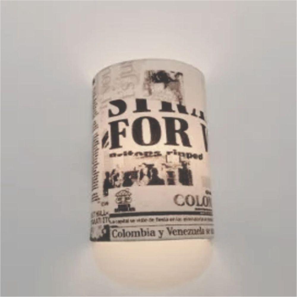 Arandela Meia Cana Retro Vivare Md-2003 Cúpula Em Tecido 25-18x10cm - Bivolt Estampado-jornal 127-220v