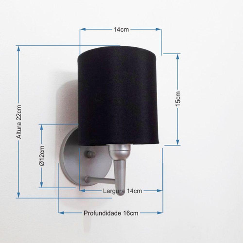Arandela Cilíndrica Vivare Md-2009 Base Cinza Cúpula Em Tecido - Bivolt Cinza-preto 127/220v
