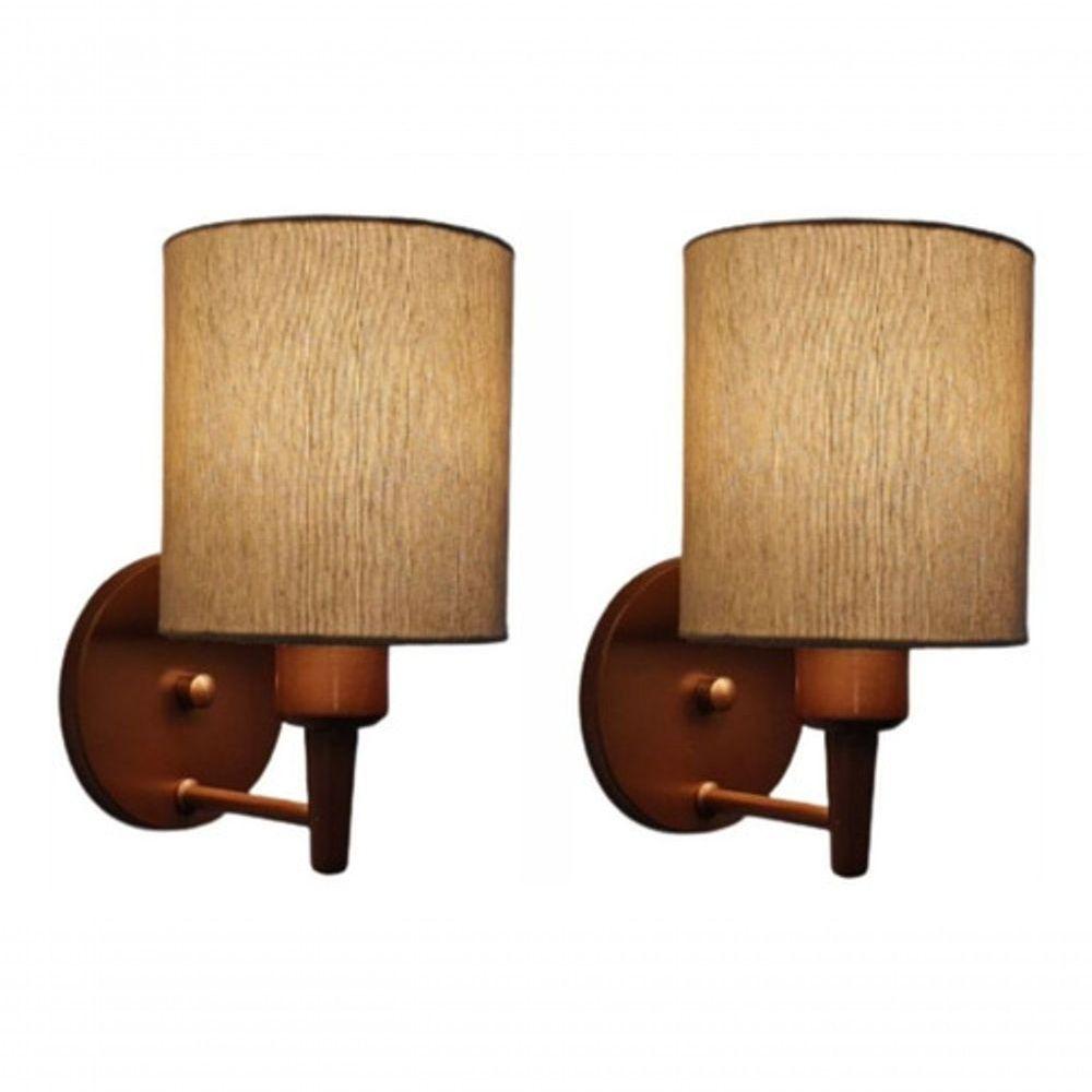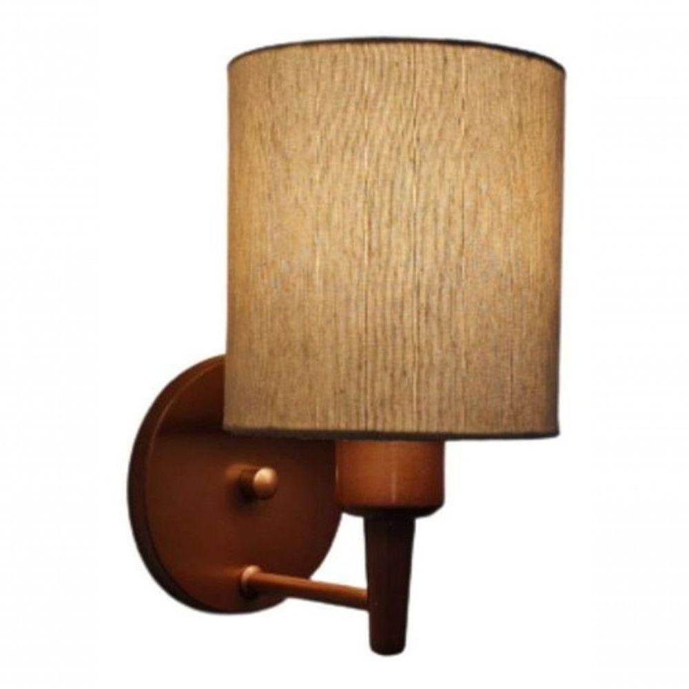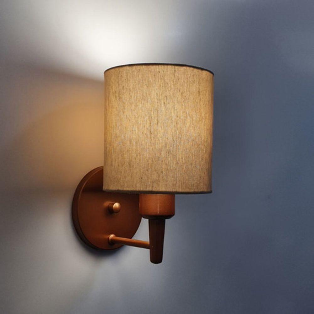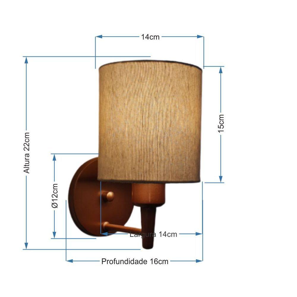 Kit-2 Arandela Cilíndrica Md-2009 Base Cobre Cúpula Em Tecido 14x15cm Palha - Bivolt