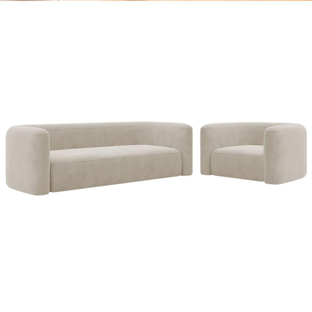 Kit Sofá 3 Lugares 200cm E Poltrona Orgânica Luxo Recepção Melina Linho Suede Bege
