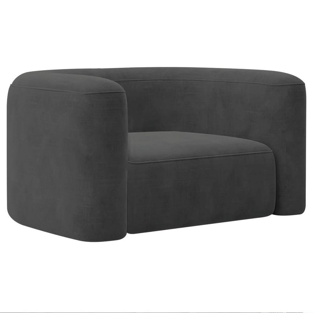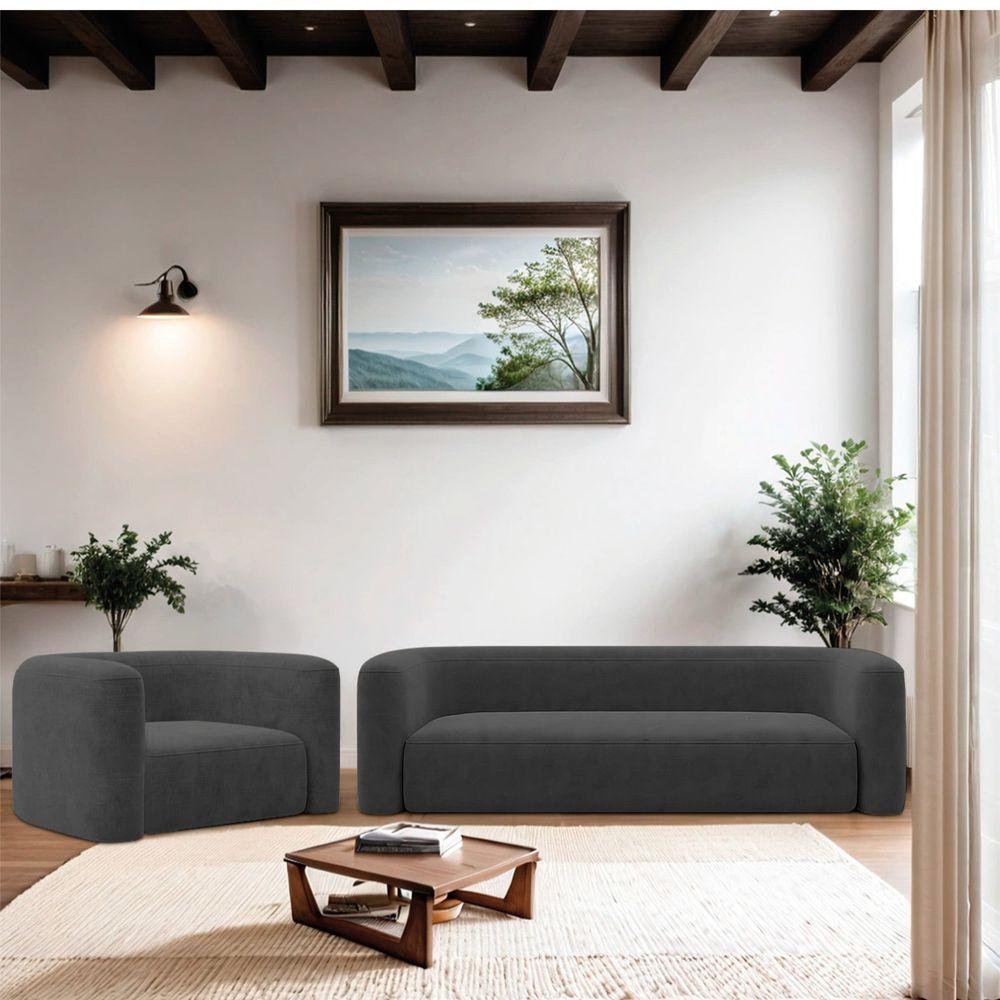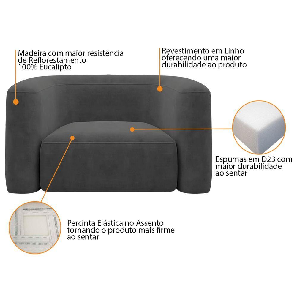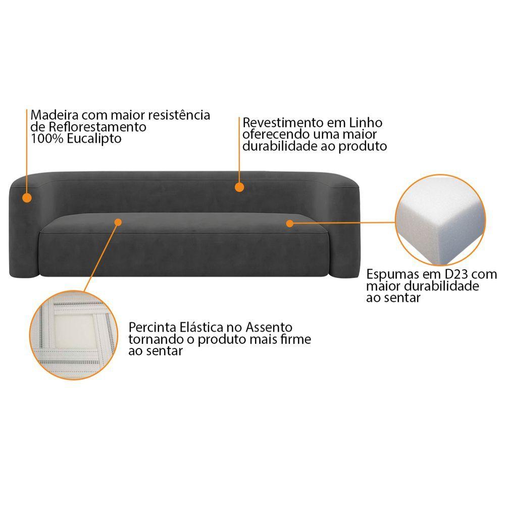 Kit Sofá 3 Lugares 200cm E Poltrona Orgânica Luxo Recepção Melina Linho Cinza Escuro