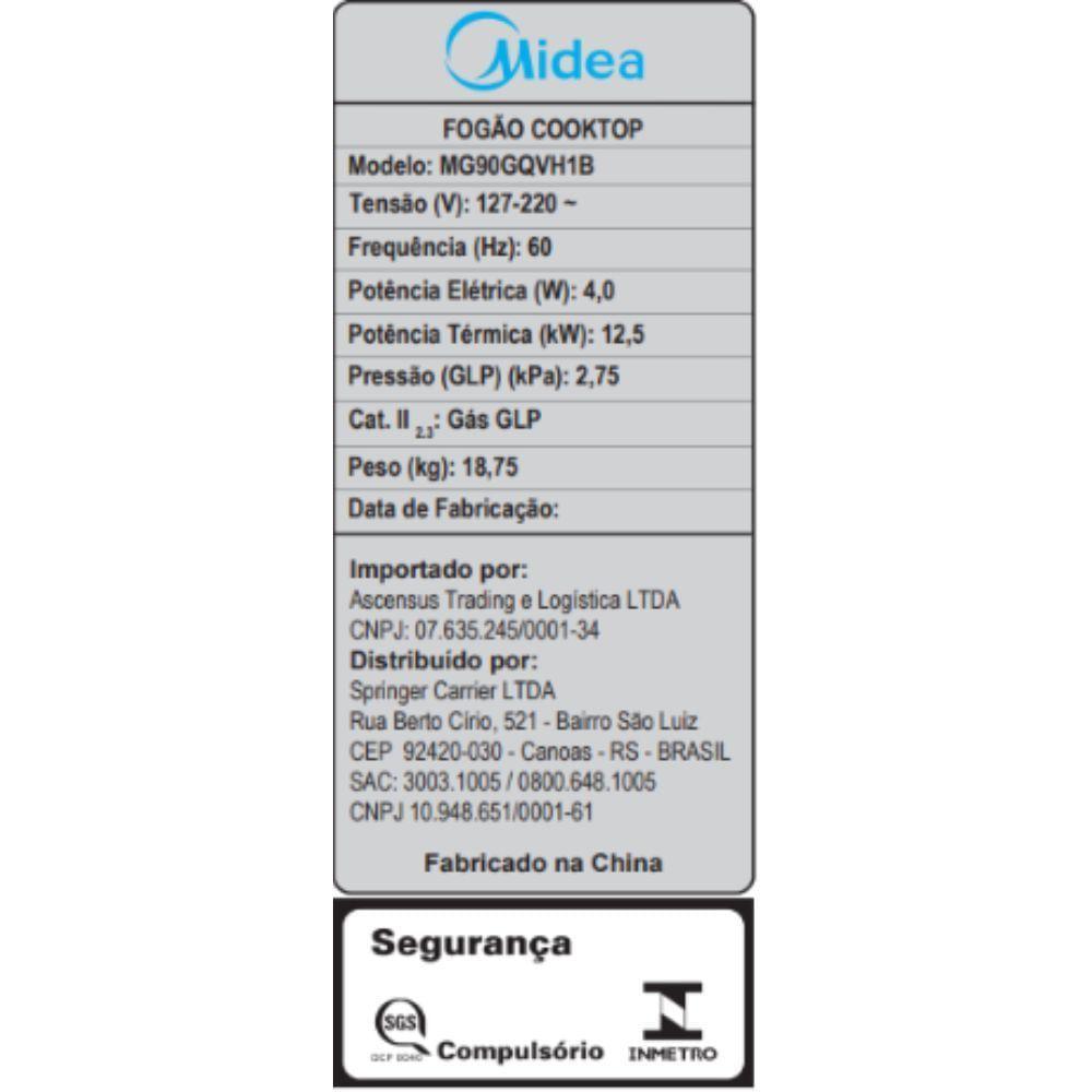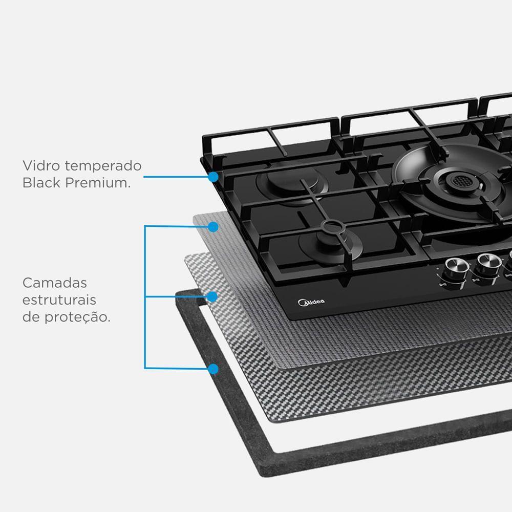 Cooktop 5 Bocas A Gás 90cm Volcano Midea MG90GQVH1B Bivolt