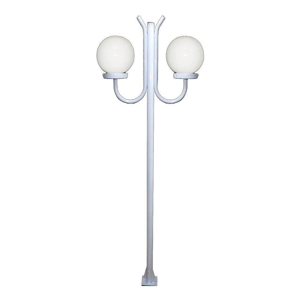 Poste Luminária Glob Duplo Braço Cima Branco 300cm