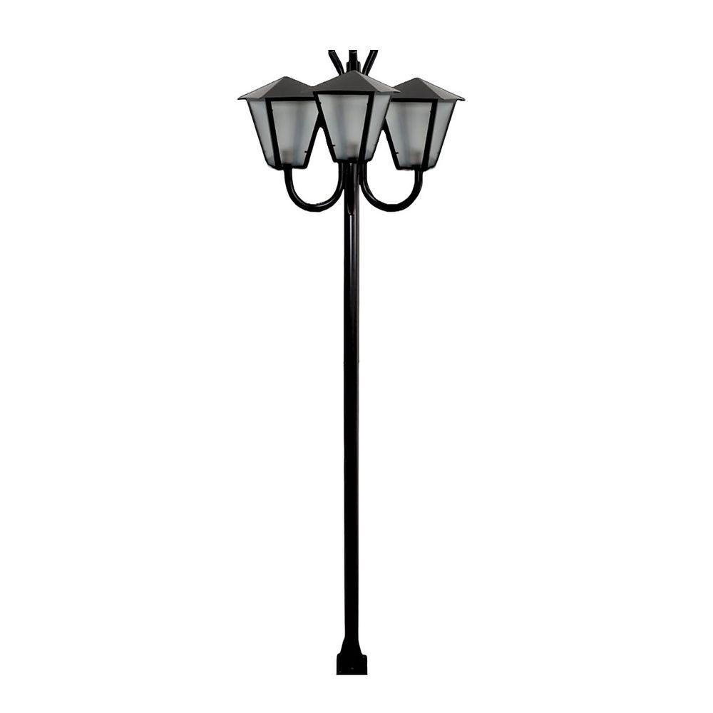 Poste Braço Luminária Romana Tripla Preto 200cm