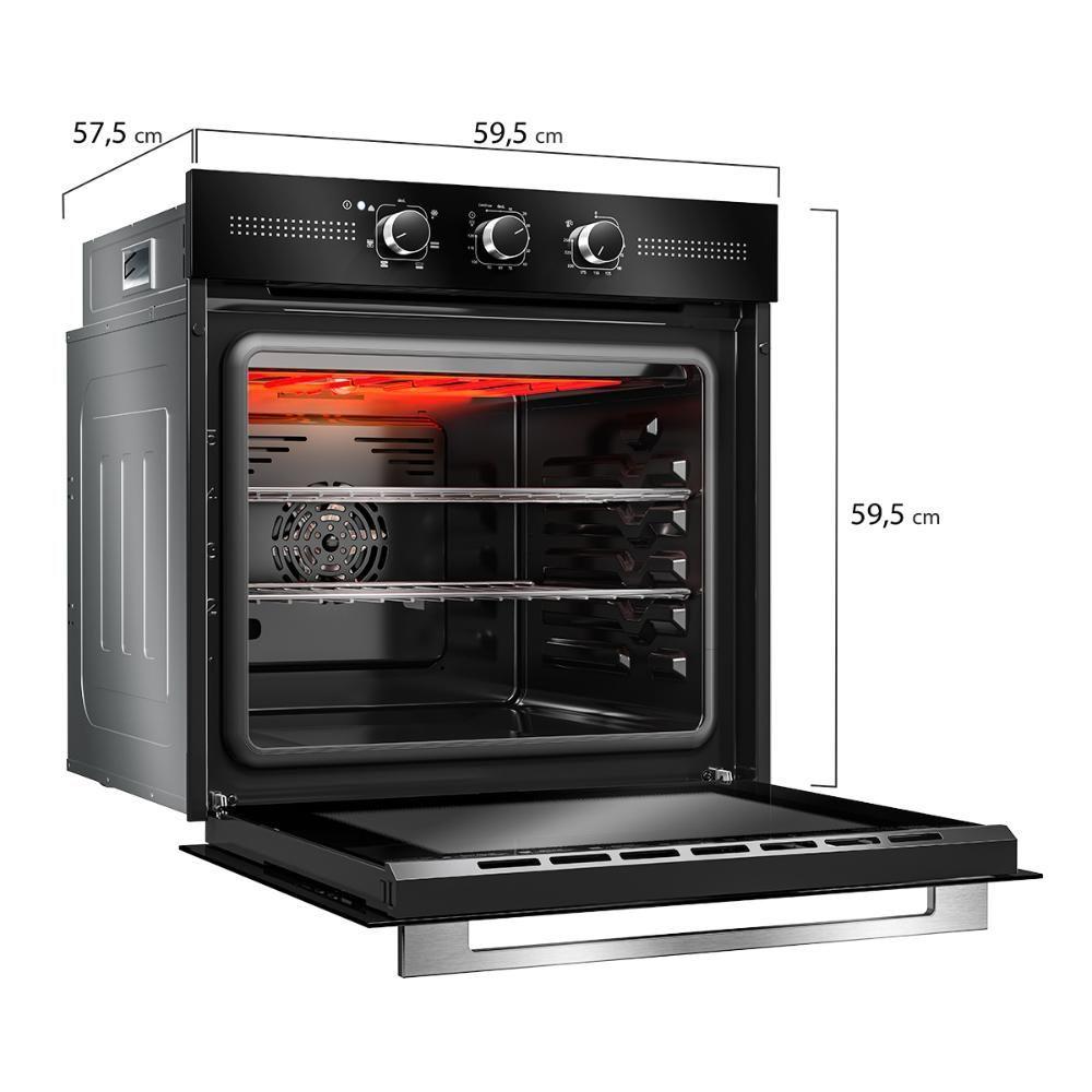 Forno Elétrico Digital De Embutir Mueller Preto 70 Litros Com Função Fryer Mfe70k 220vForno Elétrico Digital de Embutir Mueller 70 L Preto MFE70K: grande capacidade de 70 litros, potência de 2.800 W, com 7 funções incluindo função fryer, temperatura ajustável de 75 °C a 250 °C, interior esmaltado Total Clean, porta de vidro duplo com isolamento térmico, timer digital com autodesligamento, grill, luz interna, acabamento em vidro e inox — potência, versatilidade e estilo em um só forno embutido.Altura (cm): 59,5 cmLargura (cm): 59,5 cmProfundidade (cm): 57,5 cmPeso (Kg): 27,9 KgGarantia (meses): 12Tipo de Forno: Forno Elétrico Digital para EmbutirCor: PretoAbertura de porta: VerticalTimer: Relógio e timer com autodesligamentoTimer contínuo: SimAlarme Sonoro: SimDimensões internas do forno (cm): A: 35 | L: 48 | P: 44Luz no interior do Forno: SimAcabamento do interior do forno: Esmalte Total CleanControle de temperatura: O forno desliga quando o assado atingir a temperatura ideal programadaPotência 220V (watts): 2800 wattsTotal Potência: 2800 WGrill: SimBandeja para resíduos: NãoResistências Blindadas: SimIsolamento térmico: Vidro duplo e isolamento térmicoVariação de Temperatura (mínima/máxima): 75ºC a 250ºCJanela de Exaustão: NãoMaterial: Chapa de Aço escovado, frontal total em vidro duploPuxador do forno: Aço Inox EscovadoPorta do Forno: Vidro duplo na portaPrateleiras do forno: 2 prateleiras com 5 níveis de alturaCapacidade do Forno (litros): 70 litrosNA