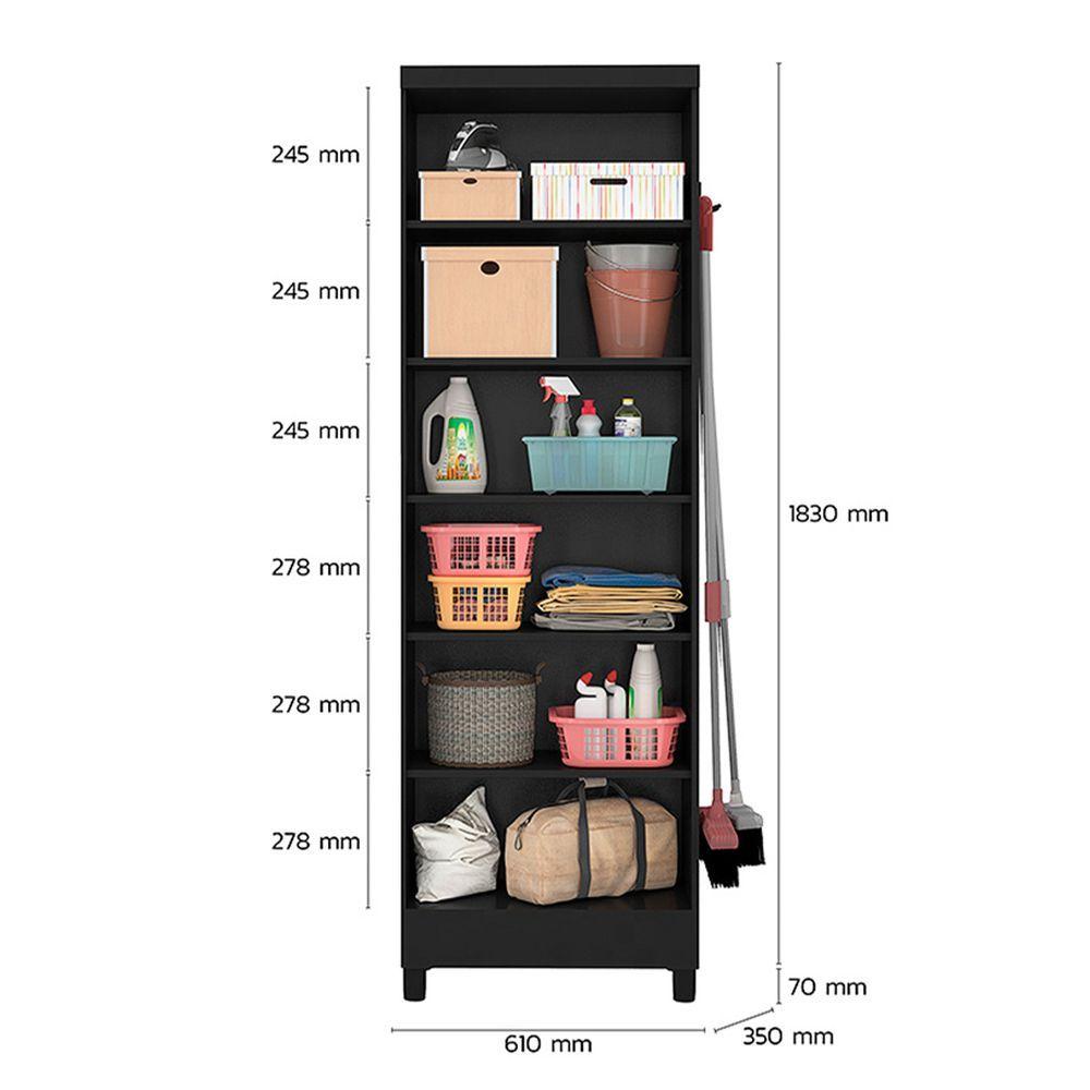 Armário Multiuso 2 Portas Bologna Q01 - Adj Decor Cor Preto O Armário Multiuso 2 Portas Bologna Q01, possui um design sofisticado, proporcionando maior funcionalidade,beleza e conforto para seu ambiente. Com excelente material e acabamento em pintura UV, esse produto lhe proporcionará qualidade e praticidade em seu dia a dia .Especificações Técnicas do Armário Multiuso 2 Portas Bologna Q01:-Altura: 190 cm;-Largura: 61 cm;-Profundidade: 35,4cm;-Peso: 35,4 kg.Diferenciais do Armário Multiuso 2 Portas Bologna Q01:- Puxadores em MDF de alta qualidade;- Produtos com as portas contendo dobradiças metálicas;- Material utilizado em MDP de alta qualidade;- Suporte externo;- Prateleiras móveis;Recomendações de limpeza:-Limpar com flanela limpa e seca. Não molhar o móvel e não expor em lugar úmido ou próximo de fontes de calor. Não usar produtos abrasivos.Observações Importantes:- As imagens ambientadas são meramente ilustrativas e podem apresentar itens que não compõe o produto;- Objetos decorativos que aparecem na foto não acompanham o produto;- As cores do produto podem variar de acordo com o monitor, a iluminação do ambiente, ou sua percepção visual;- O Armário Multiuso 2 Portas Bologna Q01 chegará desmontado para você, embora a dificuldade de montagem seja baixa, recomendamos que seja feita por um profissional;- Confira as dimensões antes da compra e certifique-se de que o produto passará por elevadores, portas e corredores, já que nossa entrega não inclui a subida de lances de escada, ou o lançamento de produtos;- Ao receber seus produtos, verifique no ato do recebimento qualquer dano na embalagem. Caso tenha algum, favor não assinar o comprovante de recebimento;- Produto para uso residencial em ambiente interno, não devendo ficar exposto diretamente ao sol, calor e umidades excessivas.