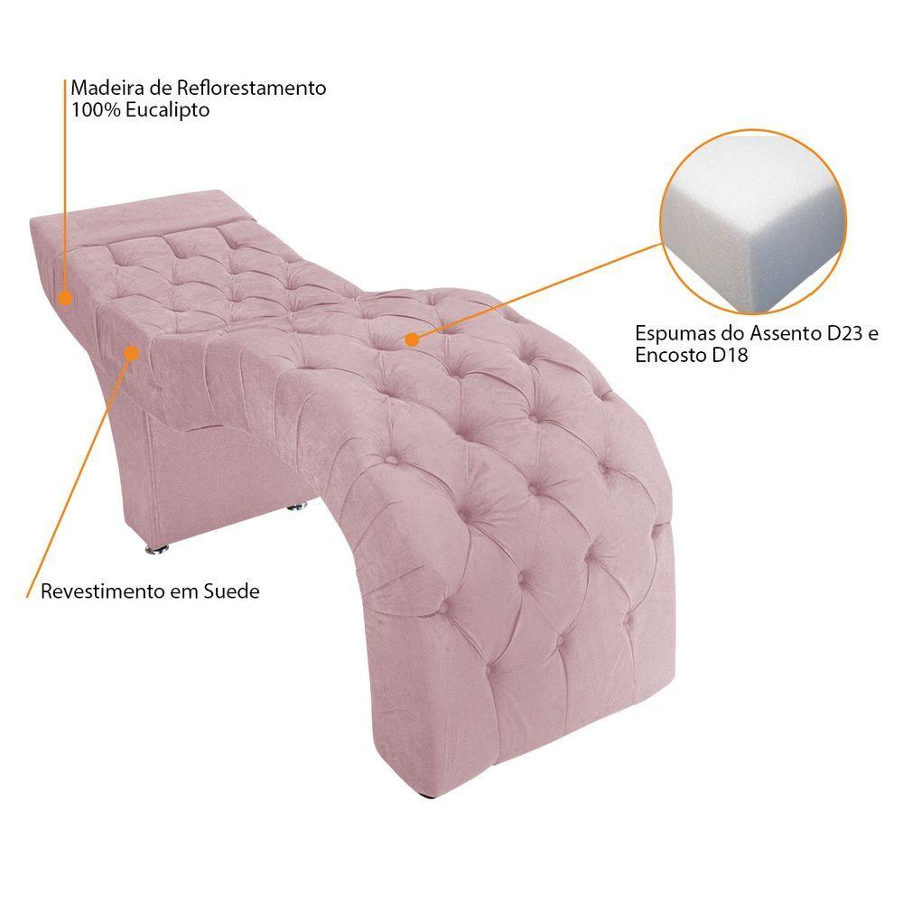 Maca Estética Facial Capitonê Cílios Salão P02 Suede - Adj Decor Cor RosabebêSe você procura um móvel que proporcione mais beleza para o seu ambiente, gerando além disso uma sensação harmônica, deixando-a não somente mais bonita, mas também, aconchegante, a Maca Estética Facial Capitonê Cílios Salão P02 foi feita para você! Possibilitando um excelente acabamento, ela é capaz de dar completude ao ambiente, gerando uma sensação de tranquilidade, necessária para garantir o conforto de seu cliente. Adquira a sua agora mesmo!Especificações Técnicas da Maca Estética Facial Capitonê Cílios Salão P02:- Altura: 87 cm;- Largura Total: 190 cm;- Profundidade: 64 cm;- Altura do Assento Alto: 74 cm;- Altura do Assento Baixo: 65 cm;- Altura dos Pés: 5 cm;- Peso: 33 Kg;- Peso Suportado: 140 Kg;Diferenciais da Maca Estética Facial Capitonê Cílios Salão P02:- Material da Estrutura: fabricado com Madeira Pinus e Eucalipto Reflorestada, e alguns detalhes em MDF;- Material do Estofado: Espuma de Alta qualidade, densidade D23;- Detalhes do Pé: acompanham pés de alta resistência;Recomendações de limpeza:-Limpar com flanela limpa e seca. Não molhar o móvel e não expor em lugar úmido ou próximo de fontes de calor. Não usar produtos abrasivos.Observações Importantes:- As imagens ambientadas são meramente ilustrativas e podem apresentar itens que não compõe o produto;- Objetos decorativos que aparecem na foto não acompanham o produto;- As cores do produto podem variar de acordo com o monitor, a iluminação do ambiente, ou sua percepção visual;- A Maca Estética Facial Capitonê Cílios Salão P02 chegará montado para você, bastando encaixar os pés;- Confira as dimensões antes da compra e certifique-se de que o produto passará por elevadores, portas e corredores;- Ao receber seus produtos, verifique no ato do recebimento qualquer dano na embalagem;- Produto para uso residencial em ambiente interno, não devendo ficar exposto diretamente ao sol, calor e umidades excessivas.