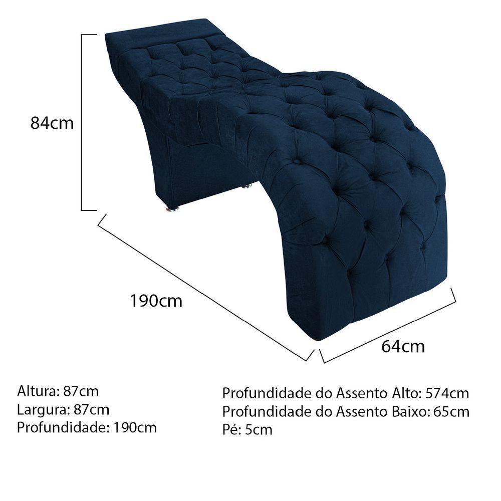 Maca Estética Facial Capitonê Cílios Salão P02 Suede - Adj Decor Cor AzulmarinhoSe você procura um móvel que proporcione mais beleza para o seu ambiente, gerando além disso uma sensação harmônica, deixando-a não somente mais bonita, mas também, aconchegante, a Maca Estética Facial Capitonê Cílios Salão P02 foi feita para você! Possibilitando um excelente acabamento, ela é capaz de dar completude ao ambiente, gerando uma sensação de tranquilidade, necessária para garantir o conforto de seu cliente. Adquira a sua agora mesmo!Especificações Técnicas da Maca Estética Facial Capitonê Cílios Salão P02:- Altura: 87 cm;- Largura Total: 190 cm;- Profundidade: 64 cm;- Altura do Assento Alto: 74 cm;- Altura do Assento Baixo: 65 cm;- Altura dos Pés: 5 cm;- Peso: 33 Kg;- Peso Suportado: 140 Kg;Diferenciais da Maca Estética Facial Capitonê Cílios Salão P02:- Material da Estrutura: fabricado com Madeira Pinus e Eucalipto Reflorestada, e alguns detalhes em MDF;- Material do Estofado: Espuma de Alta qualidade, densidade D23;- Detalhes do Pé: acompanham pés de alta resistência;Recomendações de limpeza:-Limpar com flanela limpa e seca. Não molhar o móvel e não expor em lugar úmido ou próximo de fontes de calor. Não usar produtos abrasivos.Observações Importantes:- As imagens ambientadas são meramente ilustrativas e podem apresentar itens que não compõe o produto;- Objetos decorativos que aparecem na foto não acompanham o produto;- As cores do produto podem variar de acordo com o monitor, a iluminação do ambiente, ou sua percepção visual;- A Maca Estética Facial Capitonê Cílios Salão P02 chegará montado para você, bastando encaixar os pés;- Confira as dimensões antes da compra e certifique-se de que o produto passará por elevadores, portas e corredores;- Ao receber seus produtos, verifique no ato do recebimento qualquer dano na embalagem;- Produto para uso residencial em ambiente interno, não devendo ficar exposto diretamente ao sol, calor e umidades excessivas.