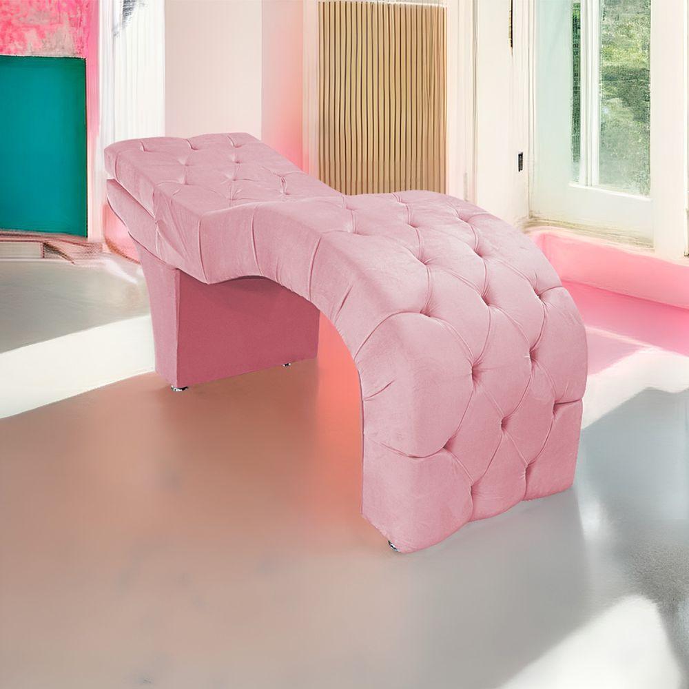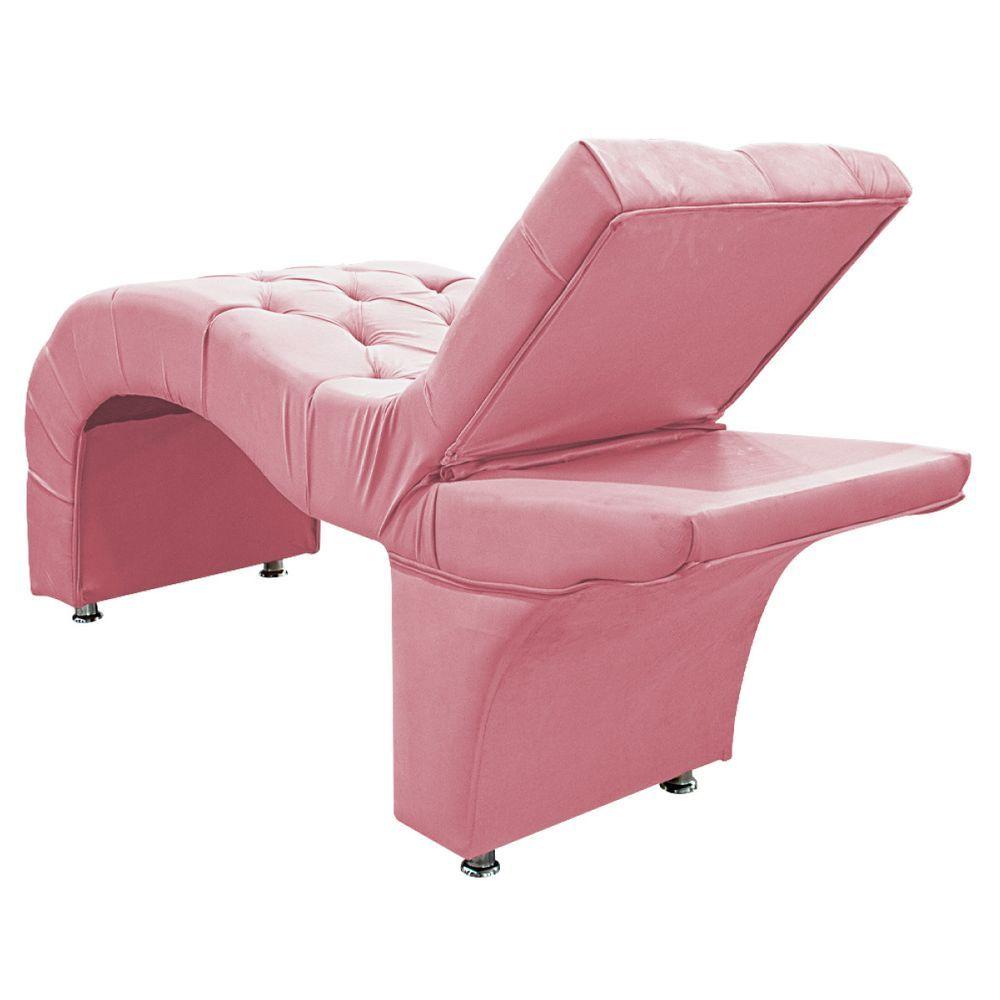 Maca Estética Com Encosto Dobrável Facial Capitonê Cílios Salão P02 Suede Rosabebê