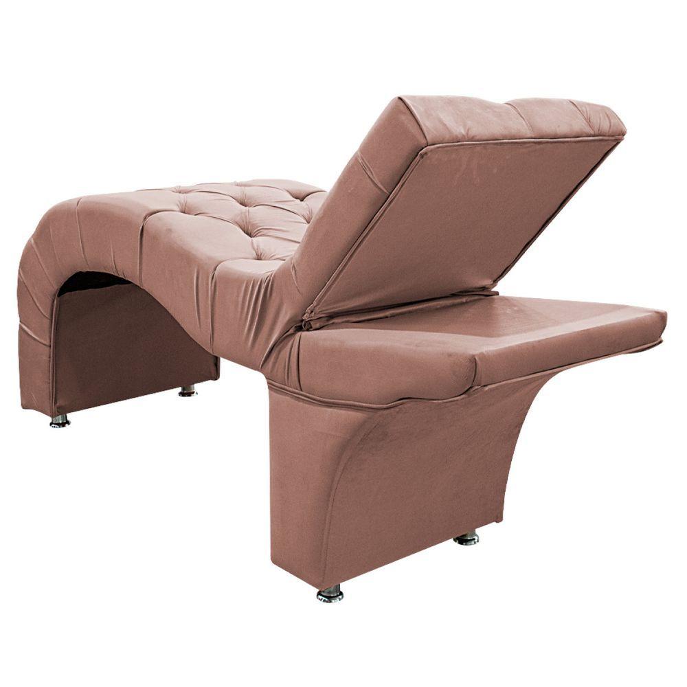 Maca Estética Com Encosto Dobrável Facial Capitonê Cílios Salão P02 Suede Rosê