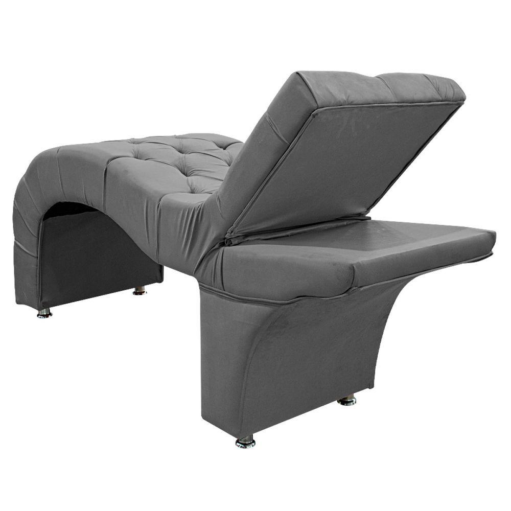 Maca Estética Com Encosto Dobrável Facial Capitonê Cílios Salão P02 Suede Cinza