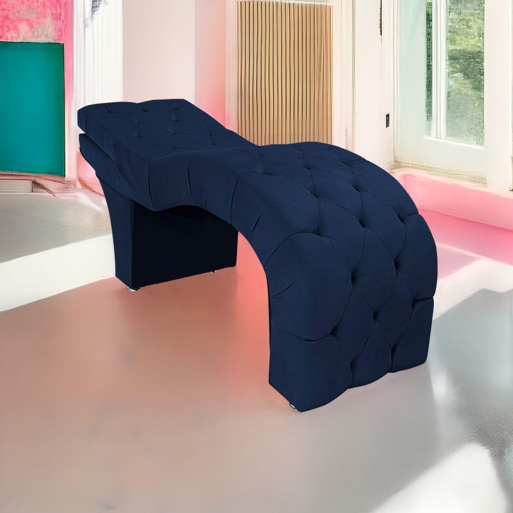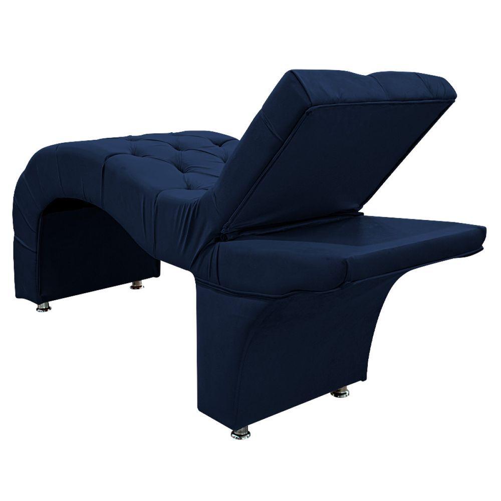 Maca Estética Com Encosto Dobrável Facial Capitonê Cílios Salão P02 Suede Azulmarinho